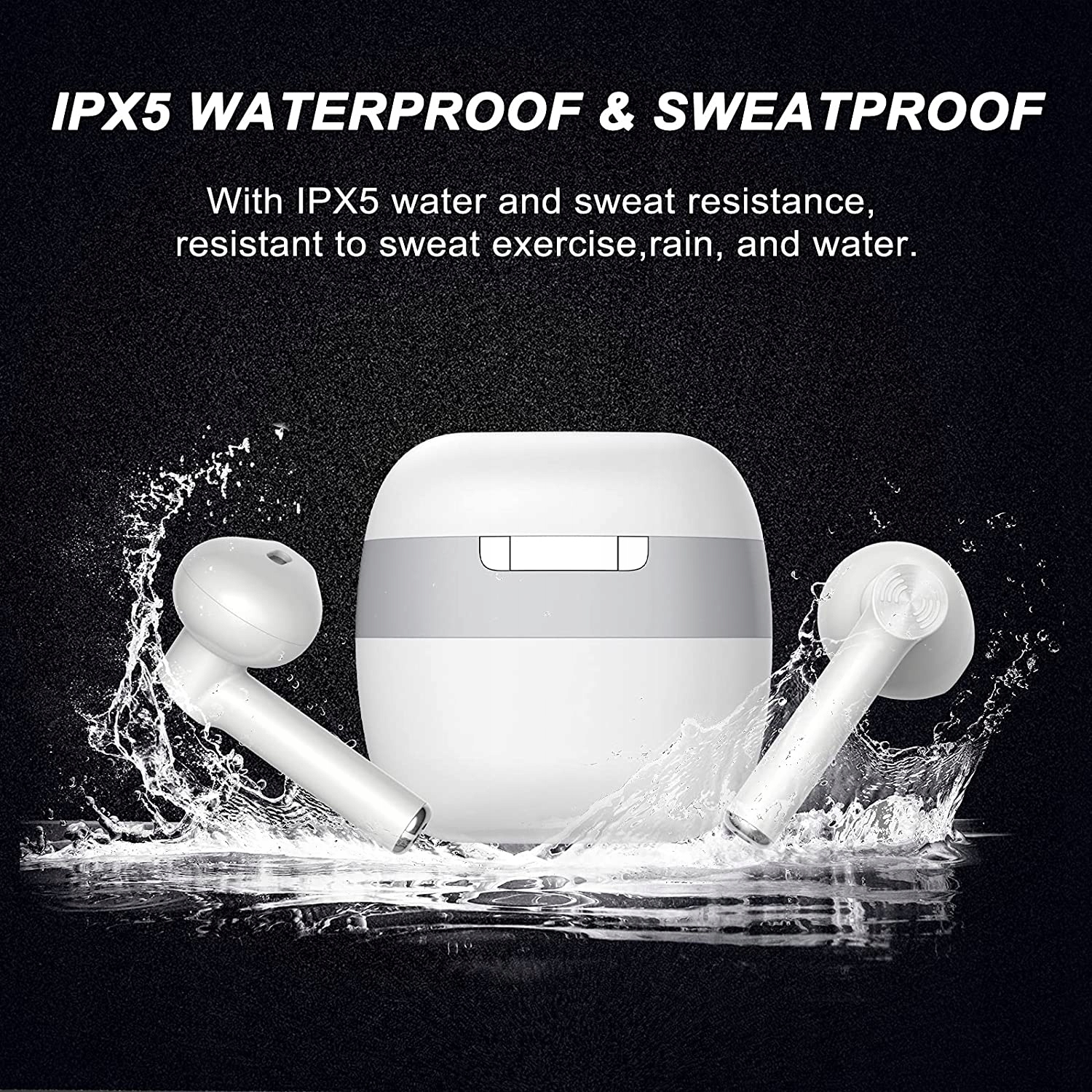 бездротові навушники Bluetooth мають водонепроникну та потужну конструкцію відповідно до стандарту IPX7. Водонепроникна технологія ефективно захищає спортивні навушники від пошкоджень, спричинених потом та дощем, і забезпечує його довговічність. 4