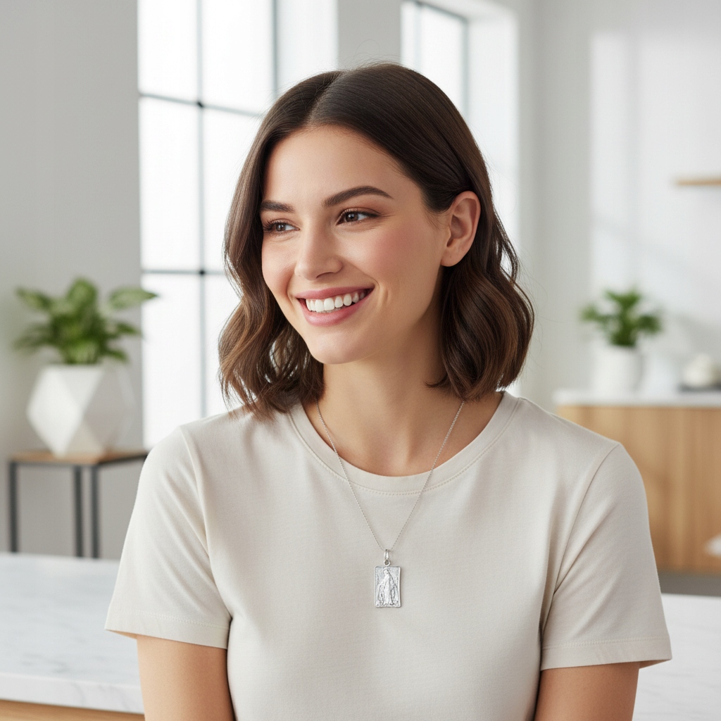 На медальйоні зображено образ Непорочної Богоматері, також відомий як Чудотворний Медальйон. Цей символ віри та відданості виготовлено зі срібла найвищої проби 925 проби, що забезпечує його довговічність та елегантність.