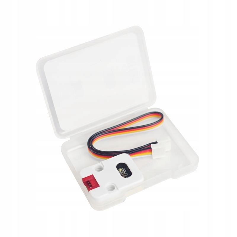 Модуль із датчиком кольору TCS34725 призначений для наборів M5Stack. Він заснований на системі з 12 фотодіодів (по 3 з червоним, зеленим, синім фільтром і 3 без фільтра) і 16-розрядних аналого-цифрових перетворювачів, завдяки яким можна отримати колірну кольоровість навколишнього середовища. світло або колір предметів. Модуль спілкується через інтерфейс I2C і живиться від 5 В. Повна документація модуля з прикладами використання доступна на веб-сайті продукту.