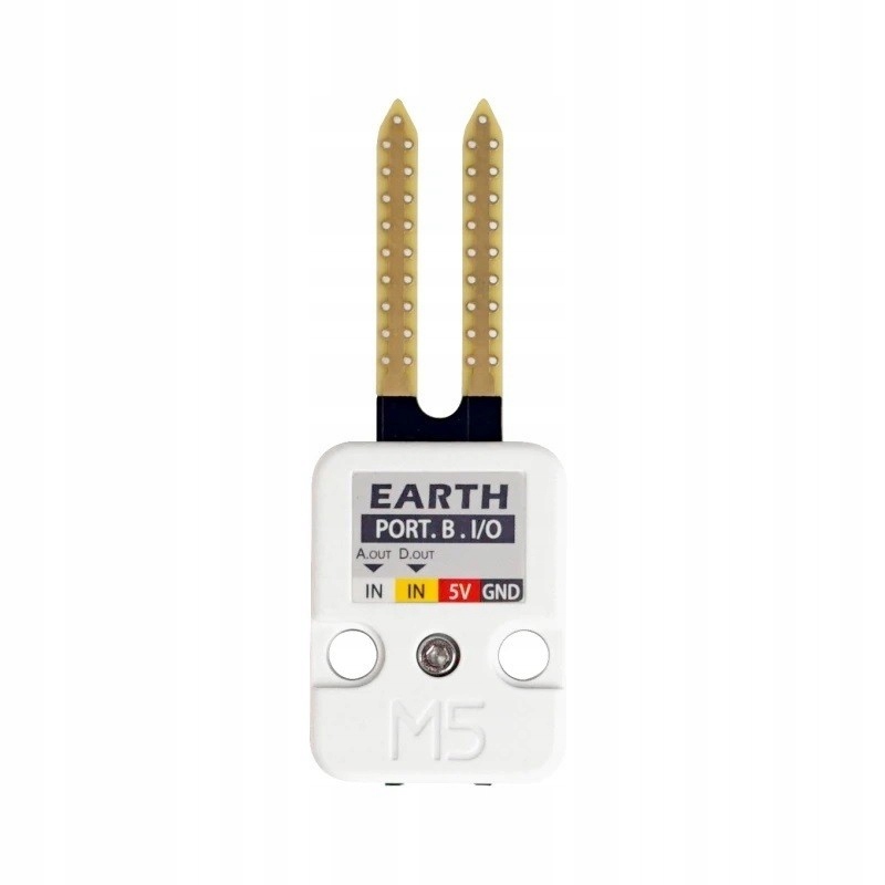 M5Stack Earth Unit — це модуль із датчиком вологості ґрунту, призначений для наборів M5Stack. Для вимірювання датчик використовує зміну провідності матеріалу гігроскопічного зонда (резистивний датчик). Щуп має два загострених виступи, що дозволяє його легко помістити в землю. Модуль має аналоговий вихід і цифровий вихід з регульованим порогом спрацьовування. Рівень аналогової вихідної напруги зростає пропорційно до рівня вологості ґрунту. Датчик живиться від мережі 5 В. Його можна використовувати, наприклад, в системах автоматичного поливу. Повна документація доступна на веб-сайті продукту.