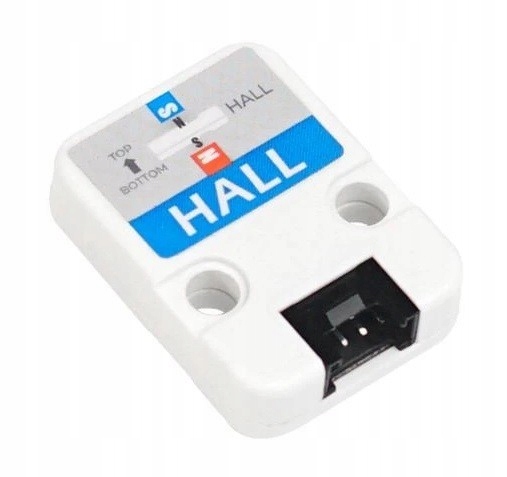 M5Stack Hall Effect Unit — це модуль із трьома датчиками Холла A3144E. Він реагує на наближення магніту S-полем зверху або N-полем знизу корпусу. Використання сигналів від трьох датчиків, підключених до логічної схеми з вентилями І, робить вихідний сигнал дуже стабільним. На виході користувач має цифровий сигнал, доступний на роз'ємі Grove. Модуль живиться від мережі 5 В, має вбудований стабілізатор 3,3 В і діод індикації стану виходу. Набір можна широко використовувати в таких додатках, як датчики дверної сигналізації, датчики наближення або для вимірювання швидкості обертання. Повна документація доступна на веб-сайті продукту.