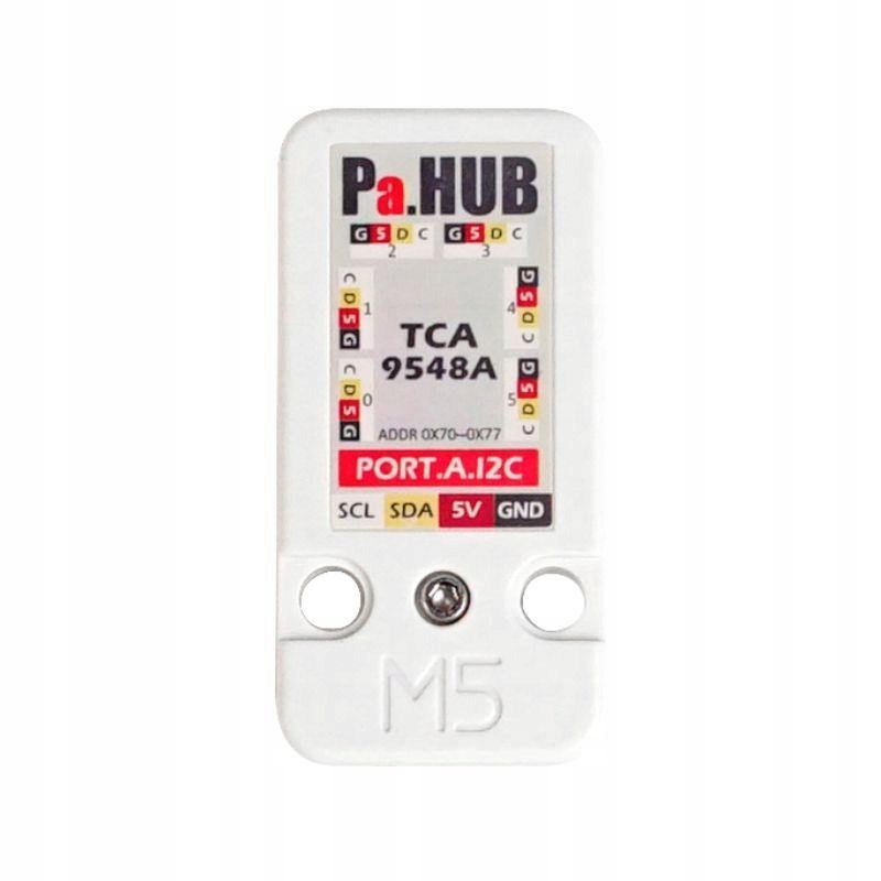 M5Stack PaHUB — це 6-портовий розширювач портів I2C для наборів M5Stack. Він оснащений 6 роз'ємами Grove і дозволяє підключати кілька пристроїв з однаковою адресою до однієї шини I2C. Він заснований на чіпі PCA9548APW, який спілкується з комплектом оцінки через інтерфейс I2C. Завдяки тому, що адресу PaHUB Unit можна змінювати, на одній лінії можна підключити до 8 розширювачів. Модуль буде використовуватися в проектах, де кількість портів I2C наборів M5Stack недостатня або є пристрої з однаковою адресою. Повна документація доступна на веб-сайті продукту.