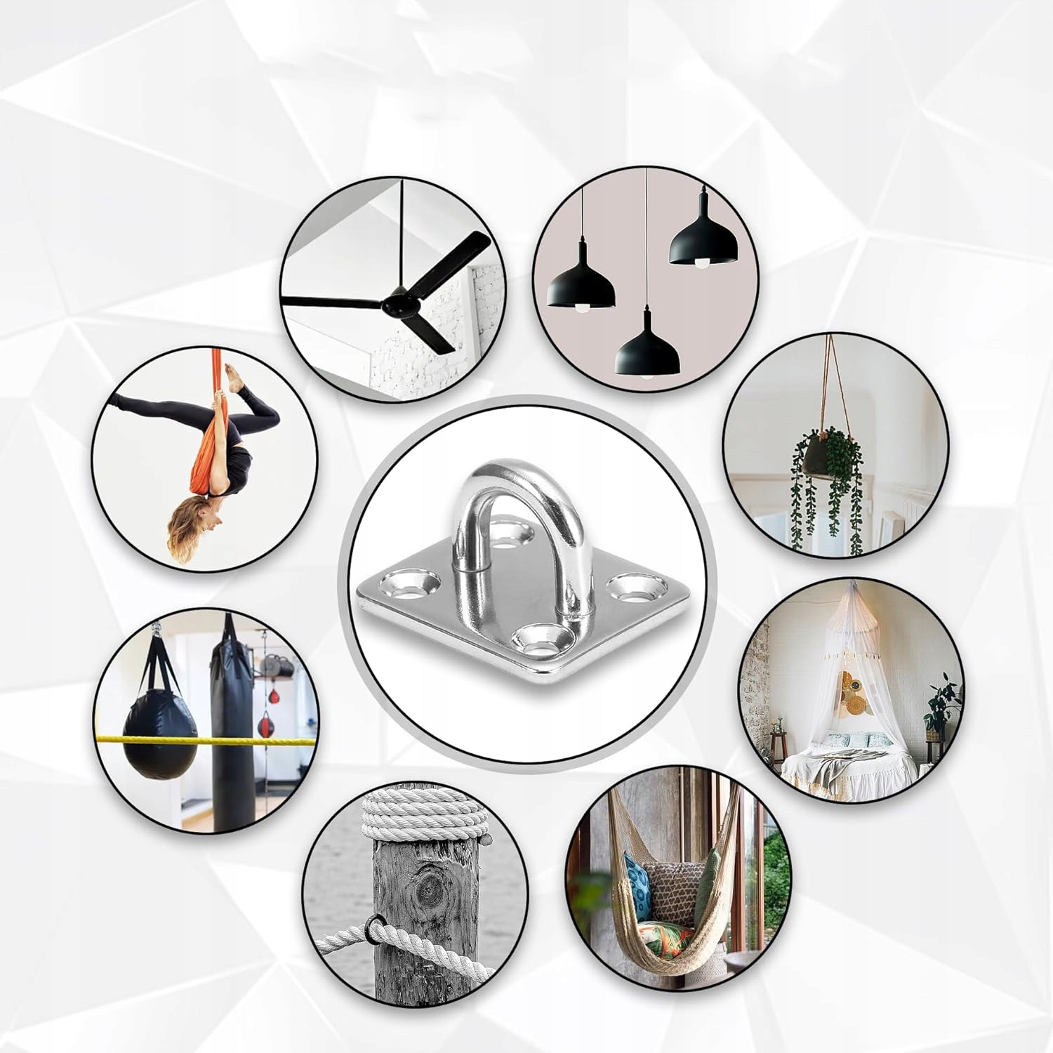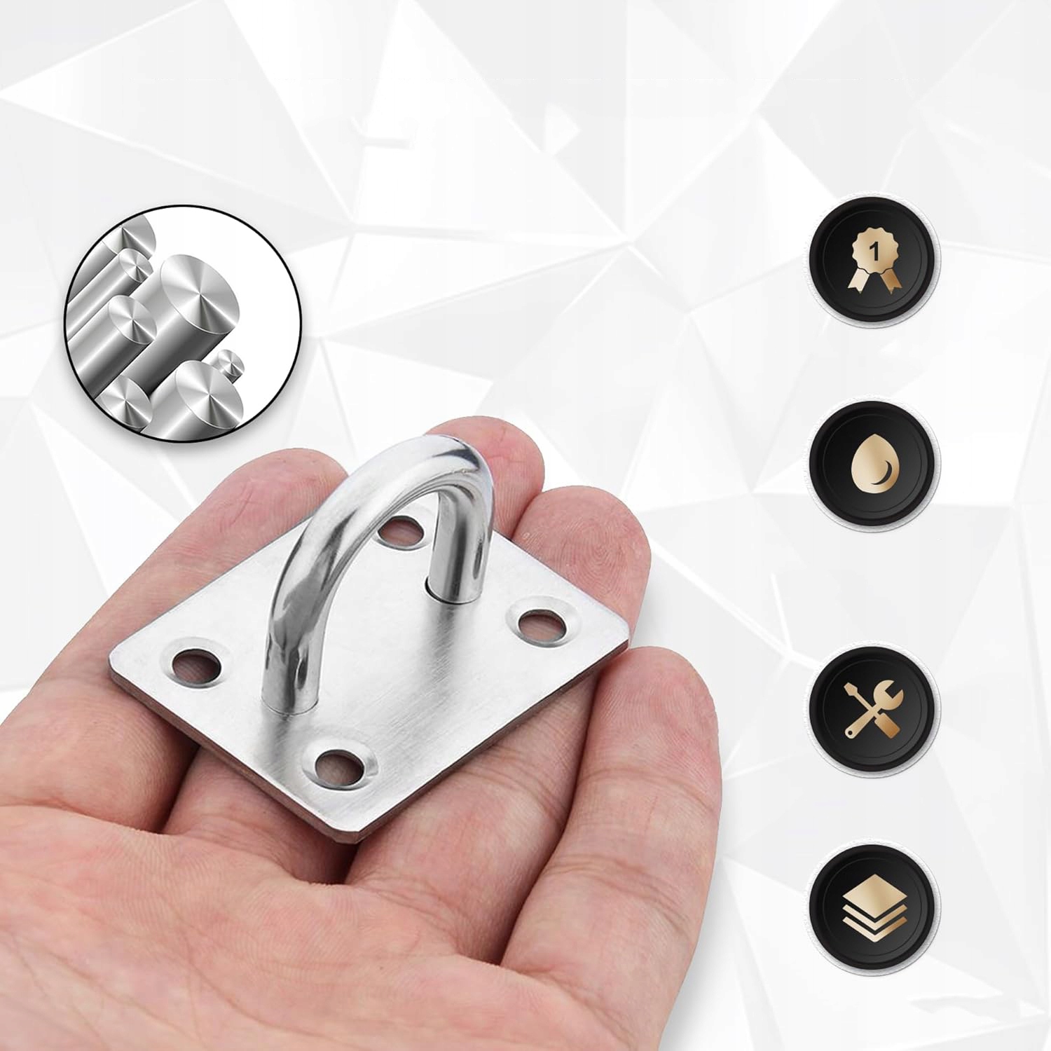 💠 【Упаковка】: Набір включає 4 пластини для очей M6 з нержавіючої сталі та 4 карабіни з нержавіючої сталі, 16 гвинтів і пластикові заглушки.