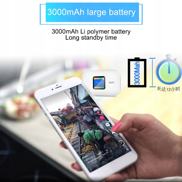 5. 3000 мАг акумулятор: мобільна точка доступу використовує літій-полімерний акумулятор на 3000 мАг, тривалий режим очікування, матеріал ABS, міцний, може використовуватися протягом тривалого часу.