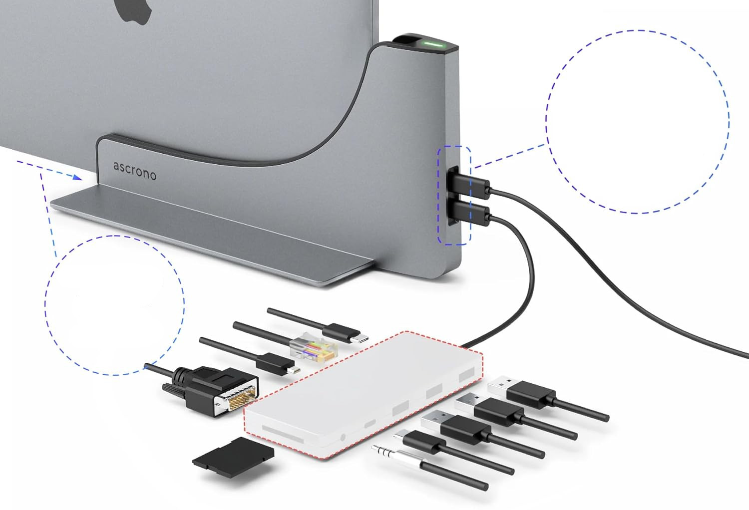 Док -станція Ascrono поєднує всі аксесуари для MacBook Pro. Порти USB-C Thunderbolt-4 пропонують швидкість 40 ГБ/с, зарядка та швидкі з'єднання для пристроїв USB-C. Ознайомтеся з пакетами адаптерів для підключення HDMI 4K моніторів та інших популярних роз'ємів.