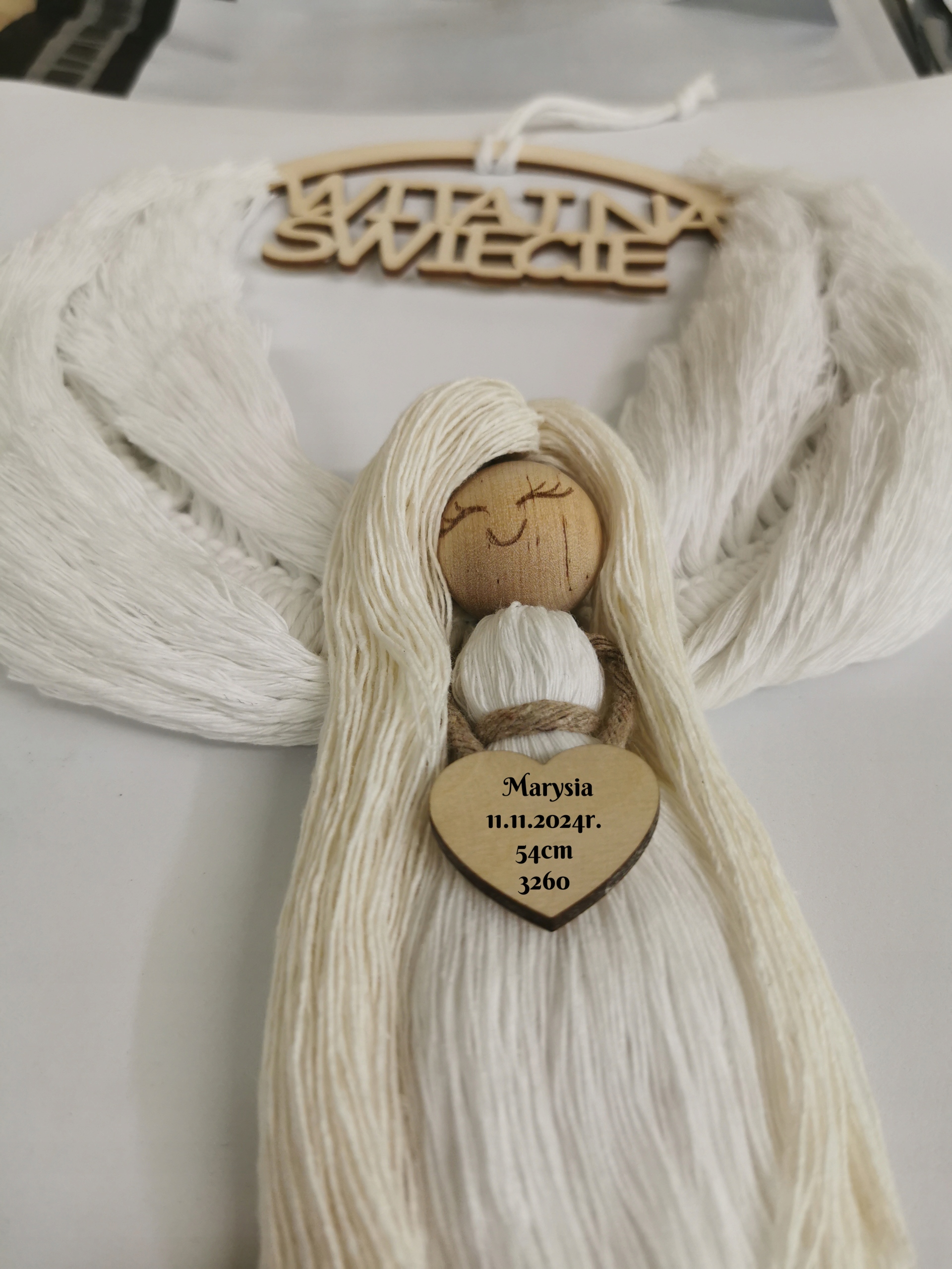 Macrama Guardian Angel Ласкаво просимо до світу народження, на щастя, сувенір 50 см