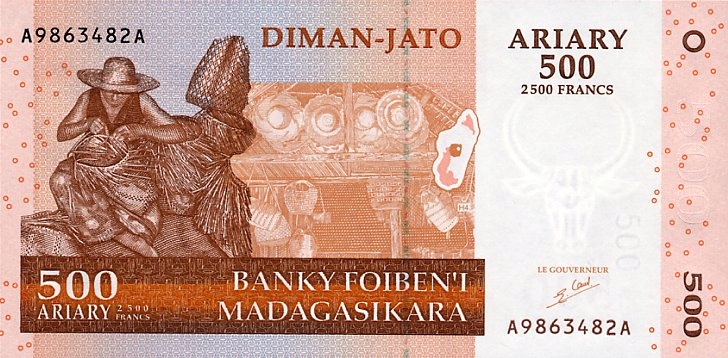 Прекрасна банкнота в 500 аріарі з Мадагаскару - 2004. (P-88a) в абсолютно ідеальному банківському стані I (UNC).