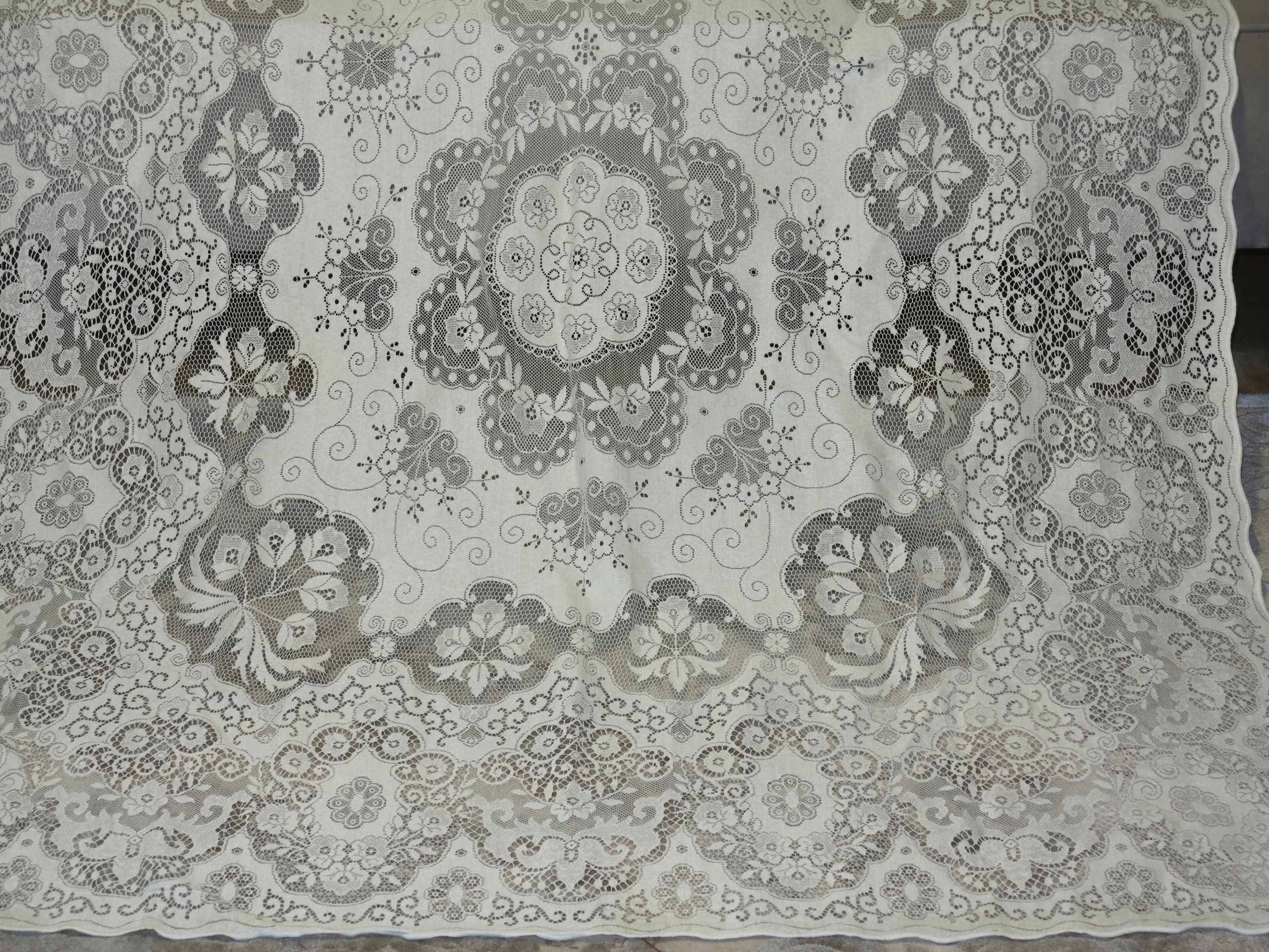 Предмет аукціону - винятково красива англійська скатертина з бавовняного мережива машинного виробництва, зі старовинним візерунком. . Красиво виглядає на столі. Має розміри: 227/143 см. Скатертина б/в, але в дуже хорошому стані та якості. Рекомендую