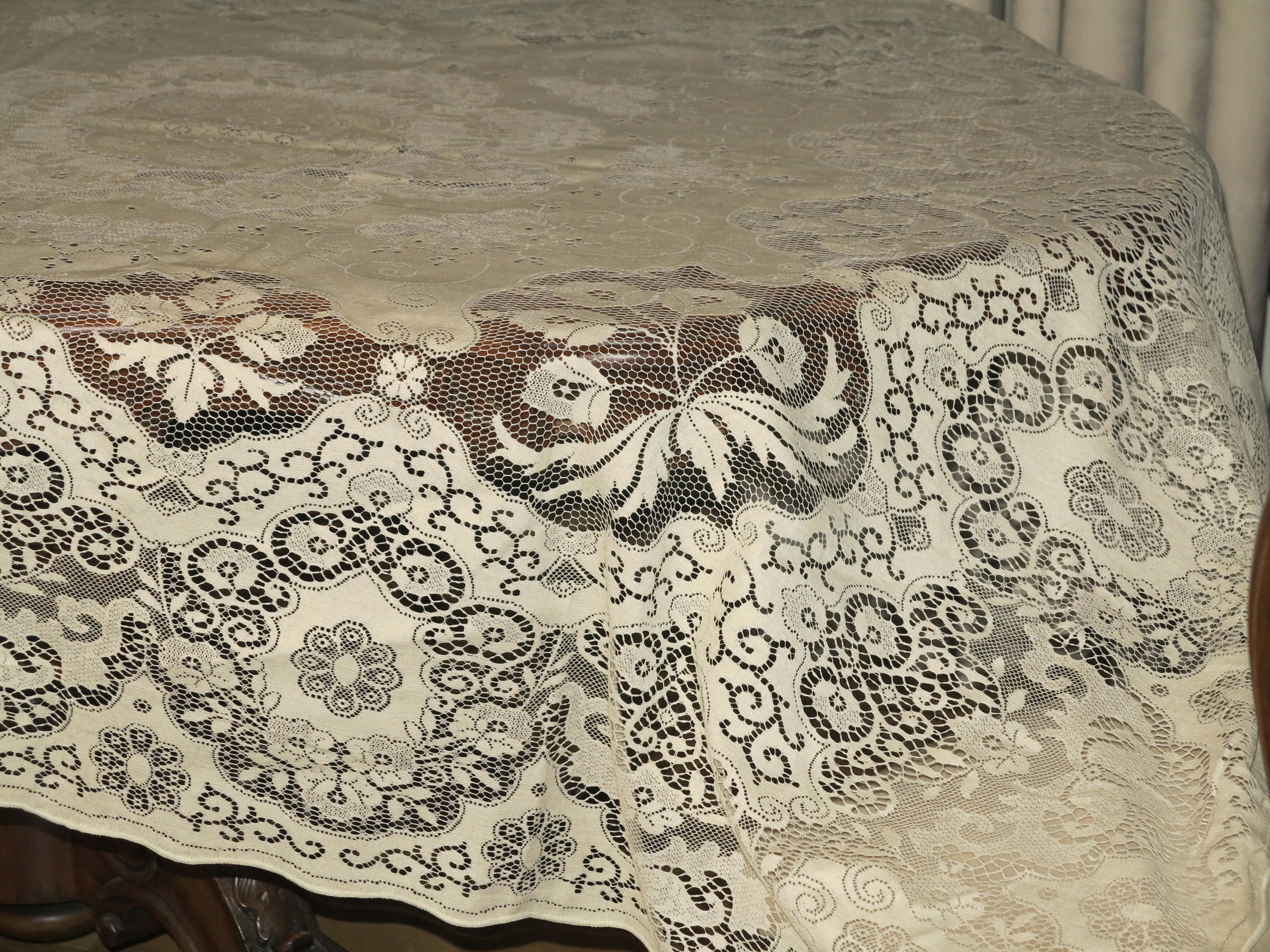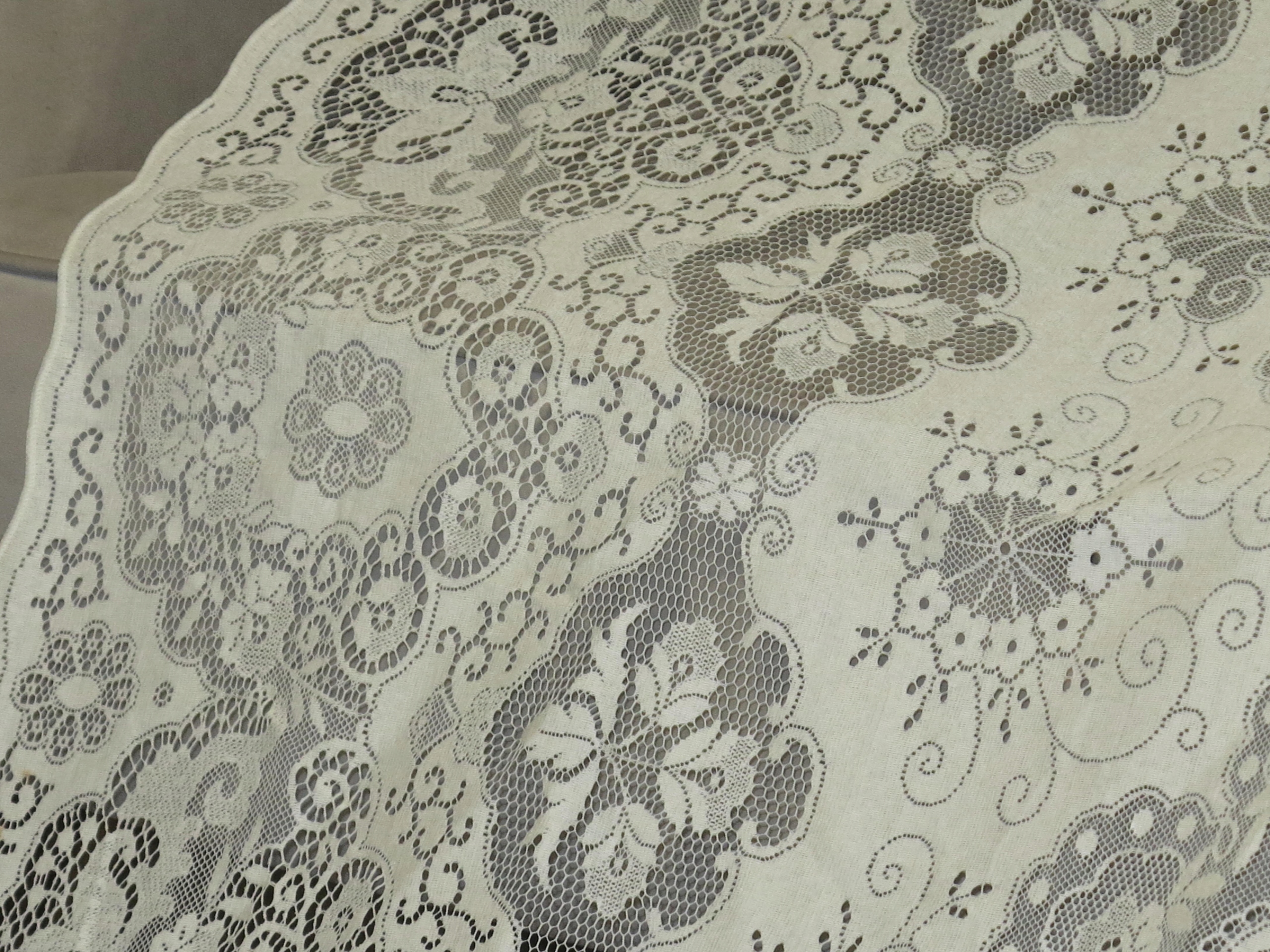 ВИРОБНИЦТВО ГР. БРИТАНІЯ - НАДЗВИЧАЙНО ЧАРІВНА АНГЛІЙСЬКА СКАТЕРТИНА З БАВОВНЯНОГО МАШИННОГО МЕРЕЖИВА, З ДУЖЕ ДЕКОРАТИВНИМ СТАРОВИНИМ ТА АЖУРОМ. СХОДИТЬ НА ГІПУРУ. КОЛІР ЕКРЮ