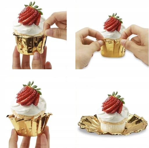 - Практичність - Завдяки стійкості до жиру та води, бігуді прості у використанні і не потребують додаткового змащення форми для випічки. Кожен запечений кекс у березі винищувача ізолюється від форми, що забезпечує більш високий рівень гігієни під час випічки . Золоті бігуді додають елегантності та стилю кожній випічці, що робить його більш візуально привабливим.
