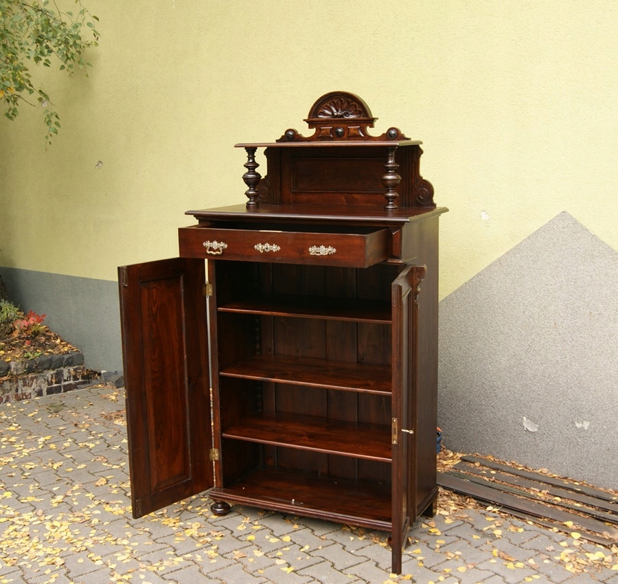 Предметом сьогоднішнього аукціону є комод міжвоєнного періоду, виготовлений із соснового дерева, витриманий у стилі еклектики, свіжий ремонт, обробка напівматова. Продукт свіжий і чистий. Замки працюють, меблі додатково декоровані надставкою на стільницю.