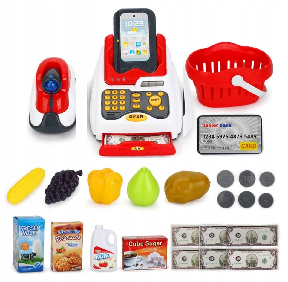 Набір ідеально підходить для гри та навчання. Навчання через гру дає чудові результати в майбутньому. Гра в магазин і касир - це чудове проведення часу, завдяки якому дитина розвивається і дізнається, що вона може знайти в магазині під час покупок.