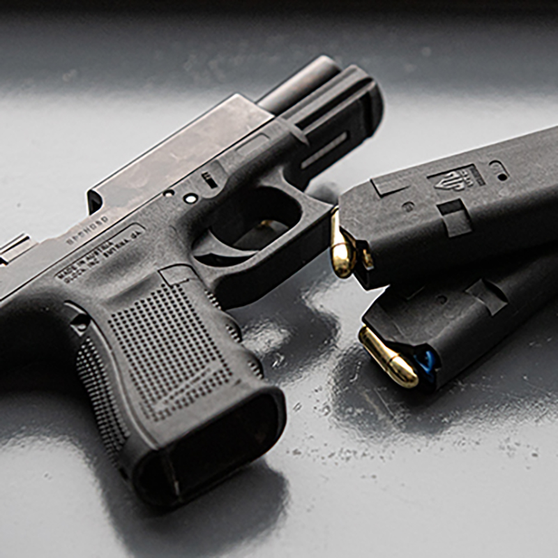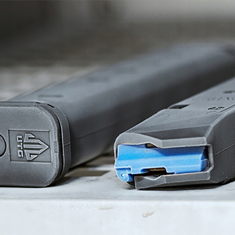 Корпус магазину виготовлений із комбінації скловолокна та матового полімеру. Конструкція стійка до здавлювання та розтріскування, тобто майже до всіх загроз, які можуть пошкодити та остаточно знищити магазин. Завдяки використанню пружини з нержавіючої сталі і стійкого штовхача, магазин плавно подає боєприпаси в патронник. Штовхач має синє забарвлення, що в поєднанні з двосторонніми бічними прицільними стеклами полегшує огляд стану зброї.