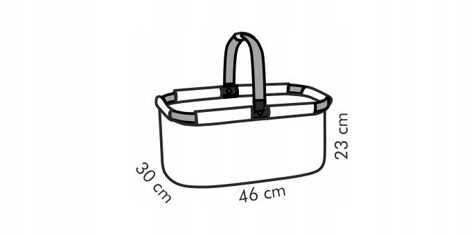 Складний кошик для покупок; місткість 23 л, вантажопідйомність 20 кг. Кошик виготовлений з якісного джинсового матеріалу та міцного алюмінієвого профілю. З практичною кишенею на блискавці та карабіном. Його можна легко складати і розкладати. Кошик слід почистити вологою ганчіркою та дати їй добре висохнути. Не можна мити в посудомийній машині, не мити.
