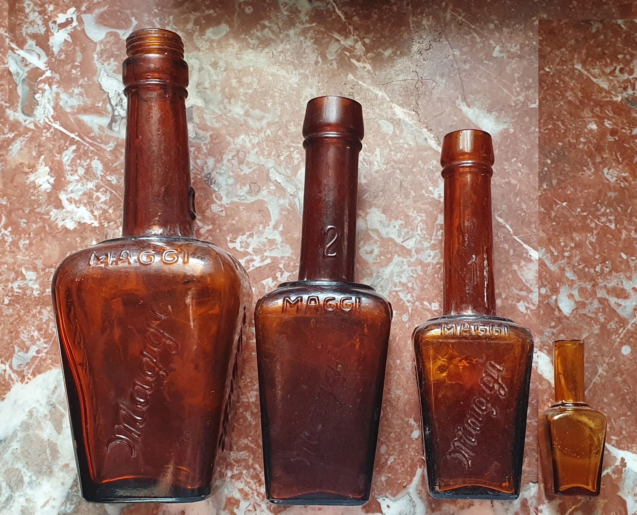 Пропоную три пляшки MAGGI, пронумеровані зліва - 3, 2, 1, розміри б. гарний, без пошкоджень. і додатковий маленький безкоштовний подарунок як четверта, найменша пляшка, також для деяких спецій,