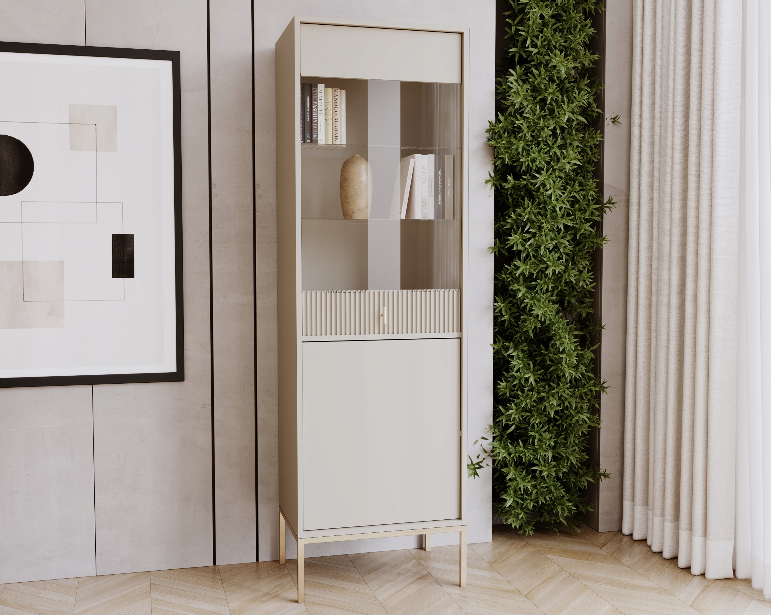 Шафа-вітрина MAGGIORE MA04 2D CASHMERE – 2-дверна, загартоване скло, золоті ручки