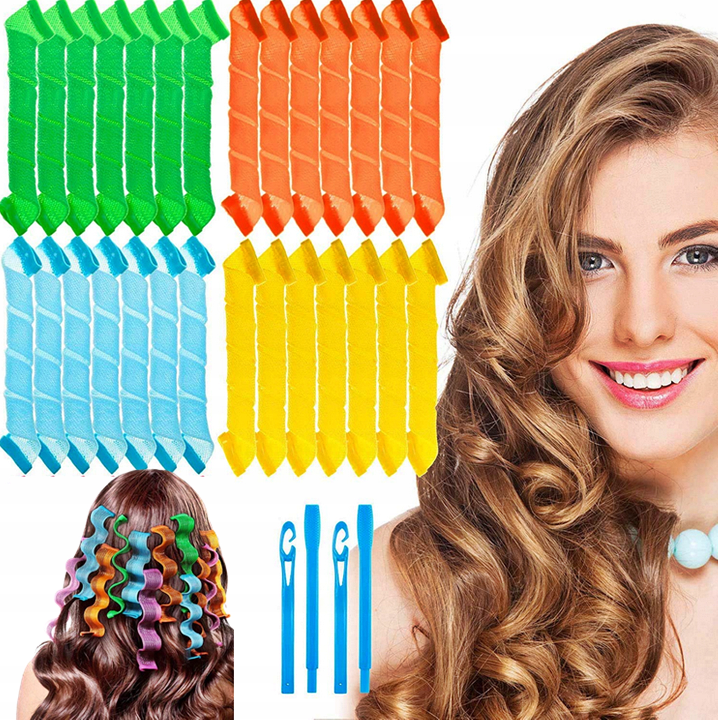 У набір входить практичний гачок для витягування волосся - ви можете накласти спіральки за кілька хвилин Ви можете забути про виснажливе накручування незручних бігудіВсе робиться без використання високих температур і хімікатів - ви не завдаєте шкоди волоссю