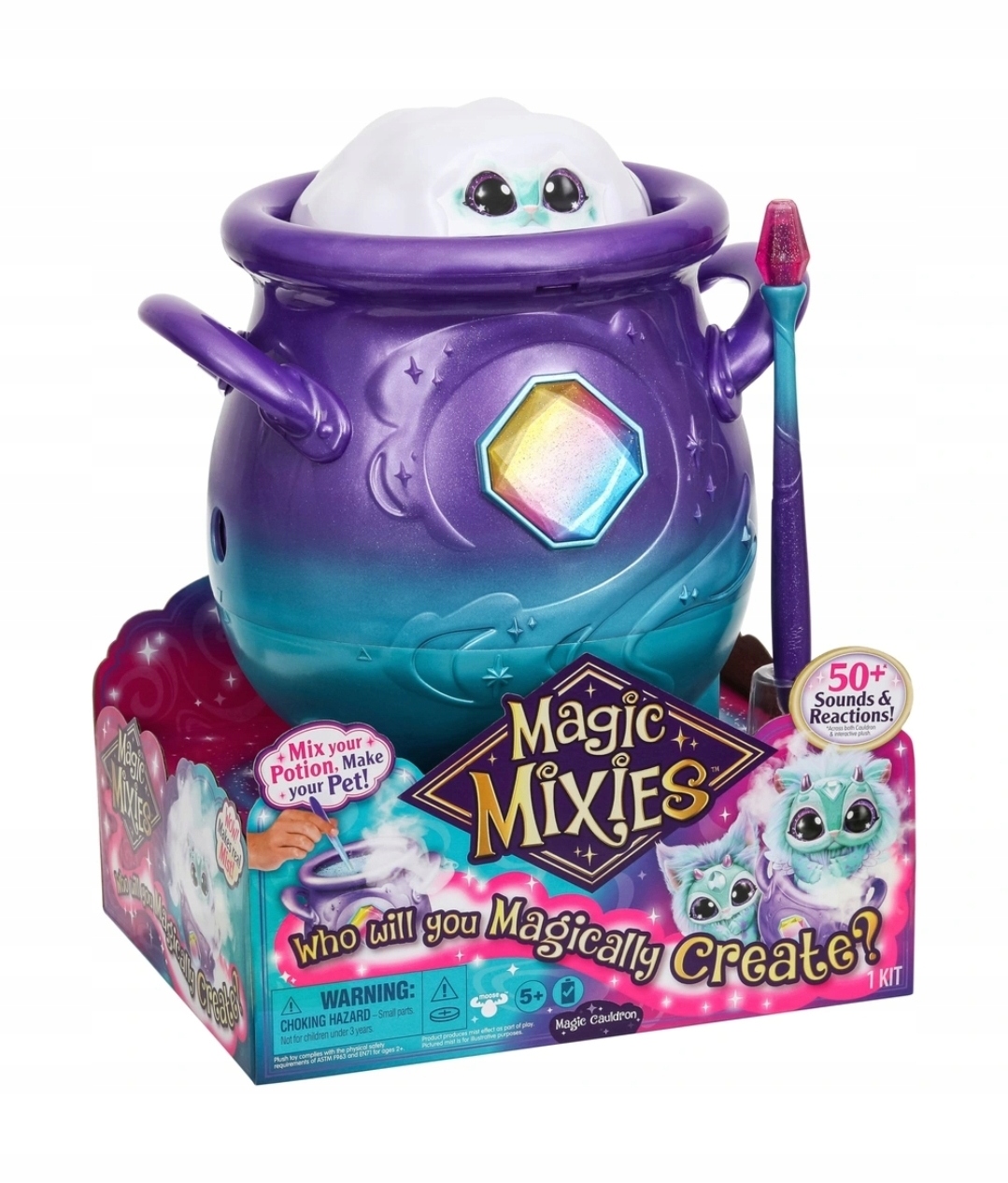 Кому ви зателефонуєте? Ваш магічний котел Magic Mixies містить усі чарівні інгредієнти та спеціальну паличку для приготування суміші та створення чарівного, магічного друга!