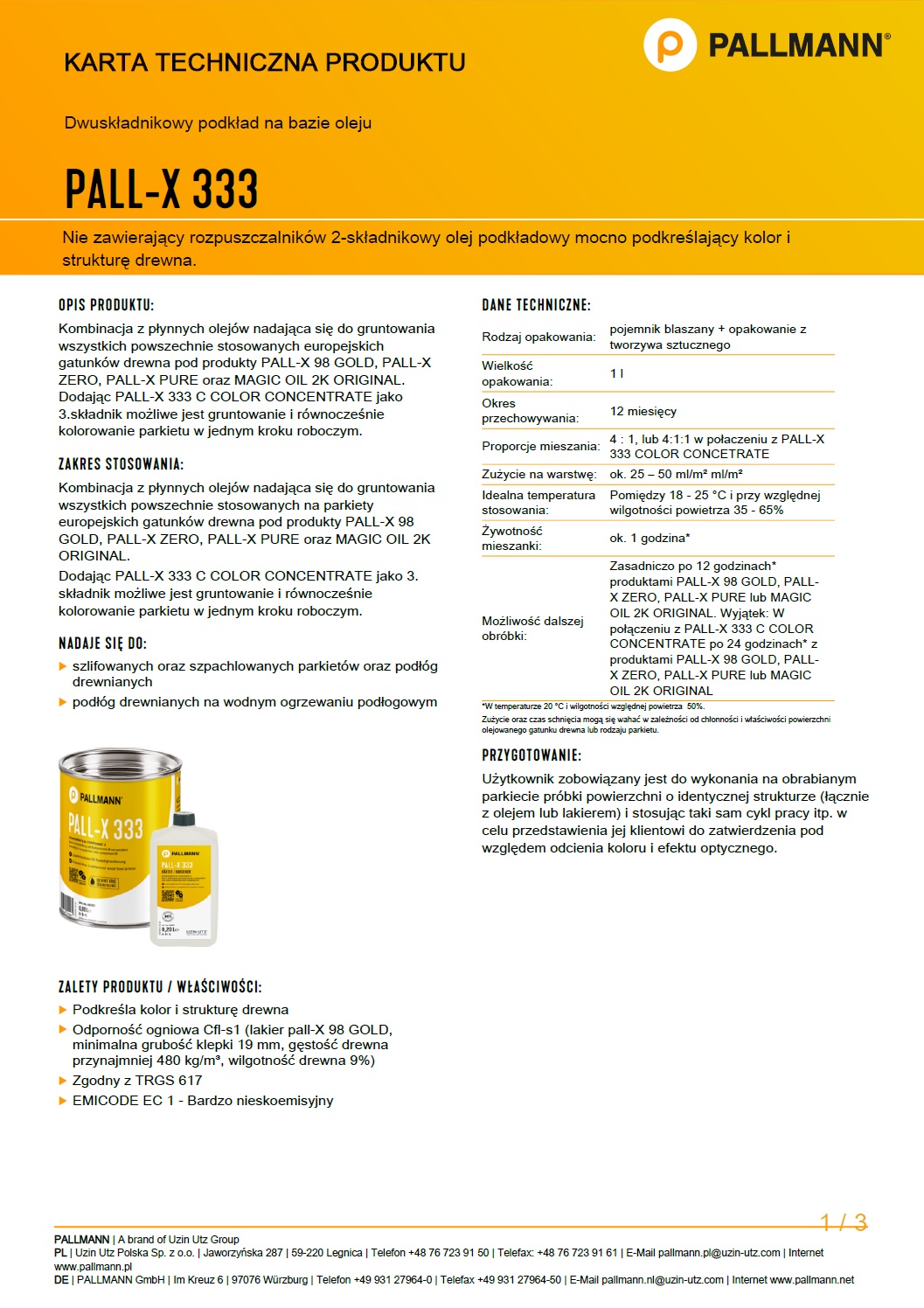 Поєднання рідких масл, придатних для праймування, всі зазвичай використовуються на судах європейських видів деревини для Pall-X 98 Золоті Продукти Pure та Magic Overy 2K. By adding Pall-X 333 C Color Concentrate as 3. The ingredient is possible to soil and at the same time coloring the parquet in one working step