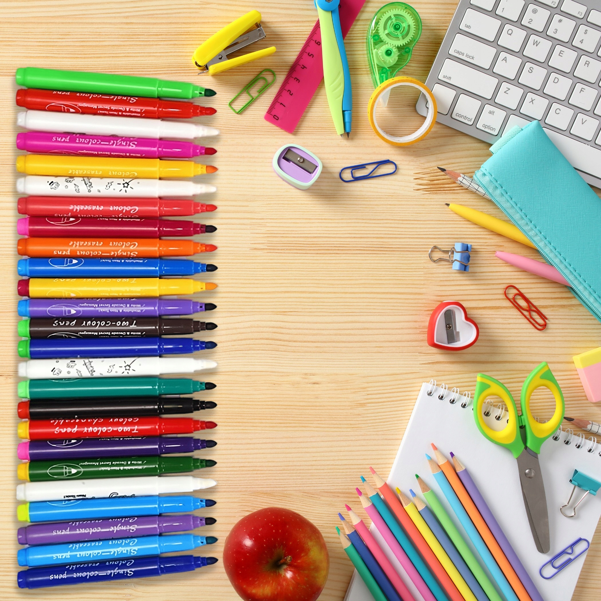 - 9 кольорових маркерів, що стираються,