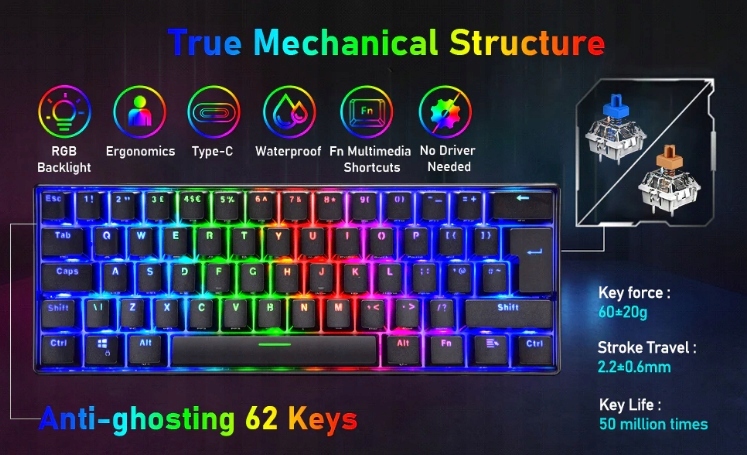 【Механічна клавіатура】 TA 61-клапанна ігрова клавіатура оснащена механічним синім перемикачем, підтримує повну функцію без конфліктів, забезпечує високу чутливість та чутливість до сенсу з звуком клацання при написанні, ви можете натиснути до 50 мільйонів разів, він більш довговічний, рекомендується невеликим портативним розміром, надає знімну здатність до глинистої водонепроникної та пилозахисної, легкозабезпеченої, що використовується, використовуючи довготривалому, витримці, що не має тривалої пилу, використовуючи довготривалому, використовуючи довготривалому, використовуючи тривалий час, що має тривалий час, використовуючи довготривалому, що використовує довготривалому пилу. Втома, є більш практичною.