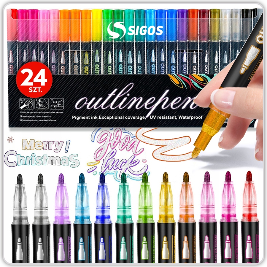 ⭐ 24 яскраві кольори з подвійною лінією та ефектом блиску.
