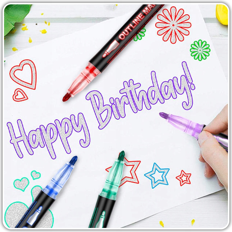 ⭐ Ефект подвійної лінії - маркери мають спеціальне чорнило, яке дозволяє писати металевою сріблястою лінією з кольоровим контуром. Завдяки цій унікальній функції діти будуть виділятися серед однолітків.