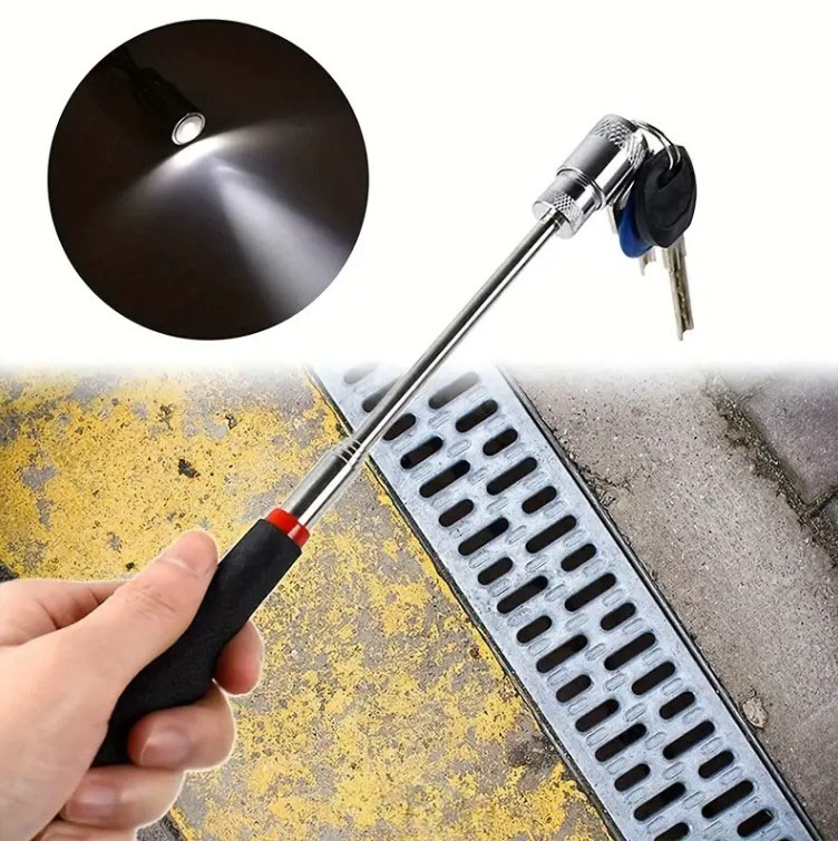 Телескопічний захват дозволяє підняти металеві предмети в різних місцях, а регульована довжина збільшує його універсальність.