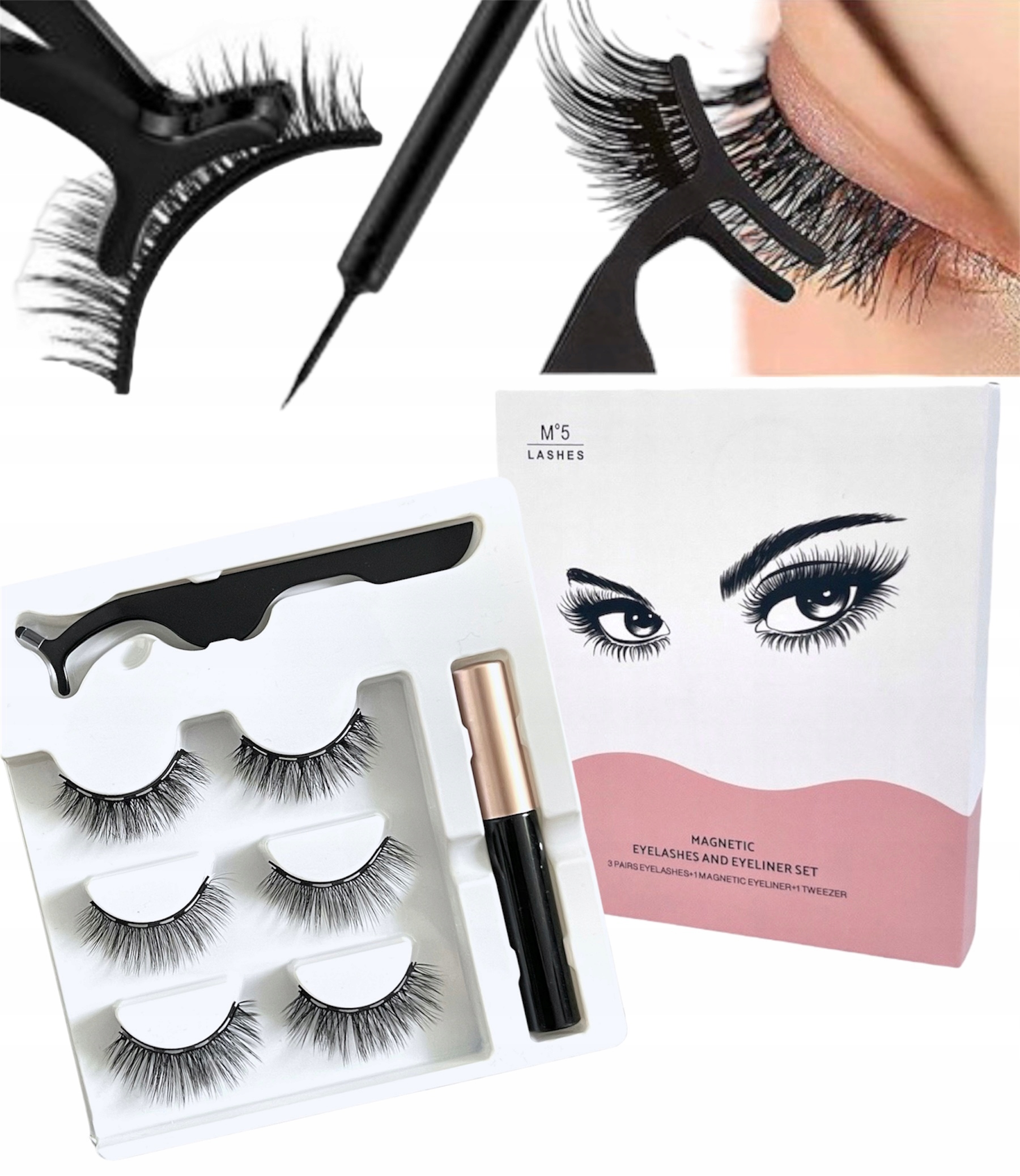 Набір містить 3 пари різних вій, підводку для очей і аплікатор.
