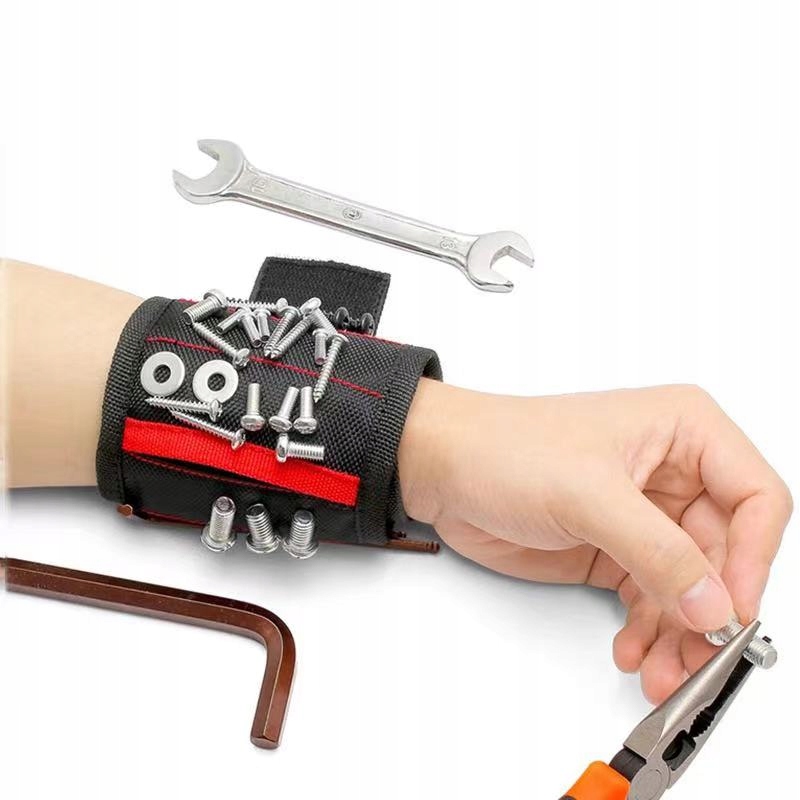 Оригінальний і універсальний магнітний браслет із 15 потужними магнітами, який використовується для кріплення інструментів і аксесуарів, таких як гайкові ключі, свердла, гвинти, гайки тощо. Це полегшує та прискорює роботу ентузіаста DIY, оскільки дозволяє йому звільнити руки, тримаючи все необхідне під рукою. Його також можна використовувати для іншої роботи, як-от шиття тощо. Цей магнітний браслет ергономічний, дихаючий і адаптивний, а завдяки застібці на липучці він повністю адаптується до розміру зап’ястя. Крім того, він також має дві кишені для неметалевих предметів, таких як шпильки, кабельні стяжки, котушки з нитками тощо.