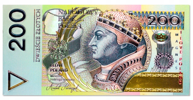 МАГНІТ БАНКНОТА 200 ЗЛОТИХ ДВОБОРНІЙ НОВИЙ