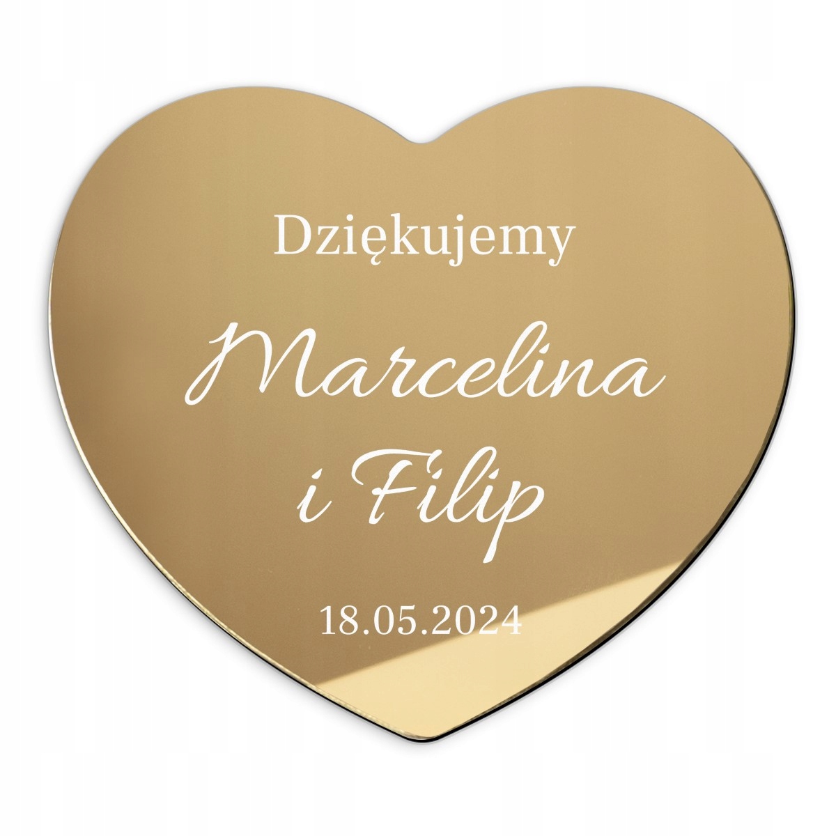 Акриловий золотий магніт подяки у формі серця для гостей на весіллі.