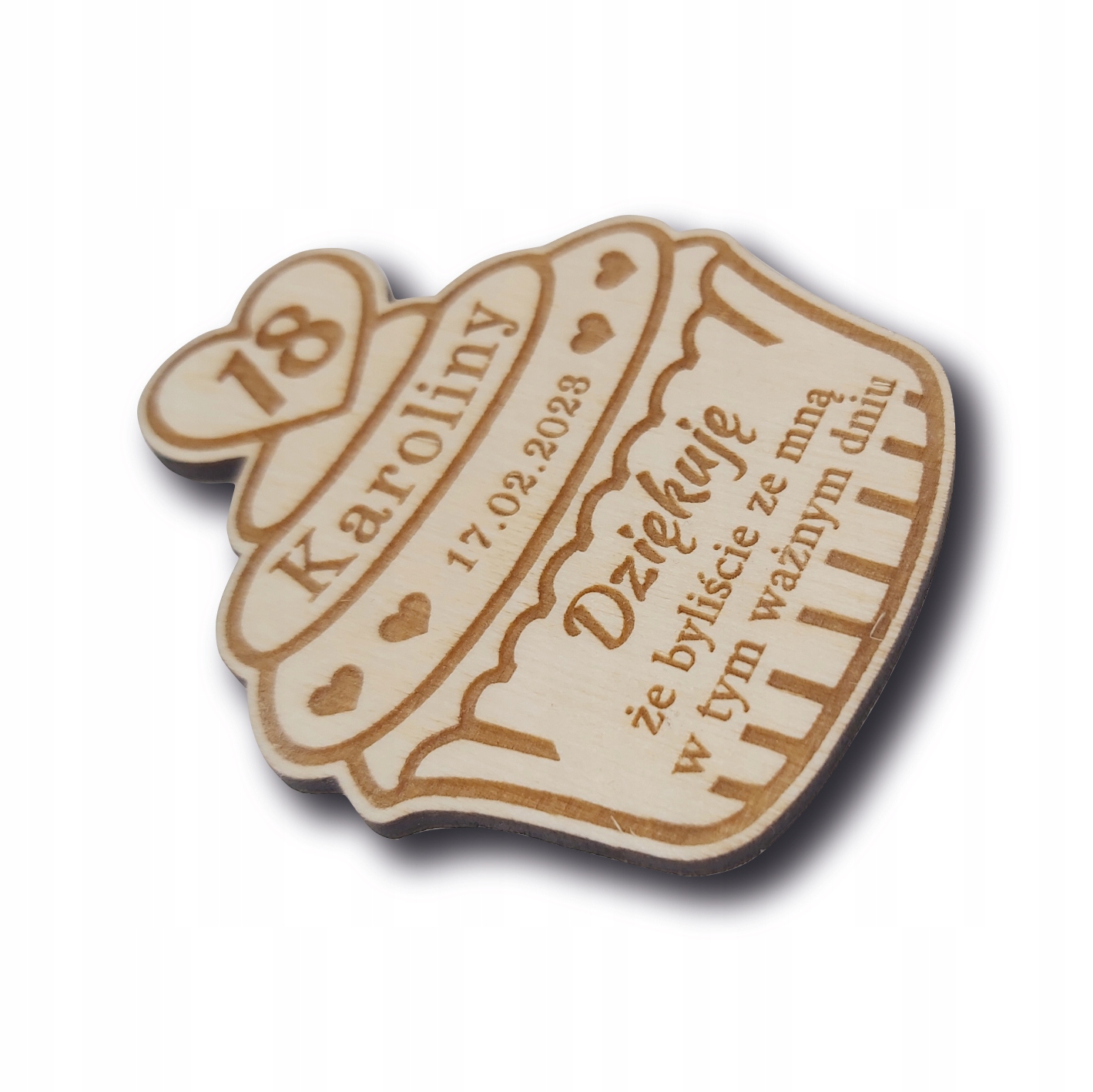 Дякуємо гостям за те, що прийшли на святкування 18-го дня народження Приємним жестом є подяка гостям за те, що вони прийшли на свято, маленьким подарунком, який увічнить прекрасна мить, а дерев'яний магніт завжди буде нагадувати свято.