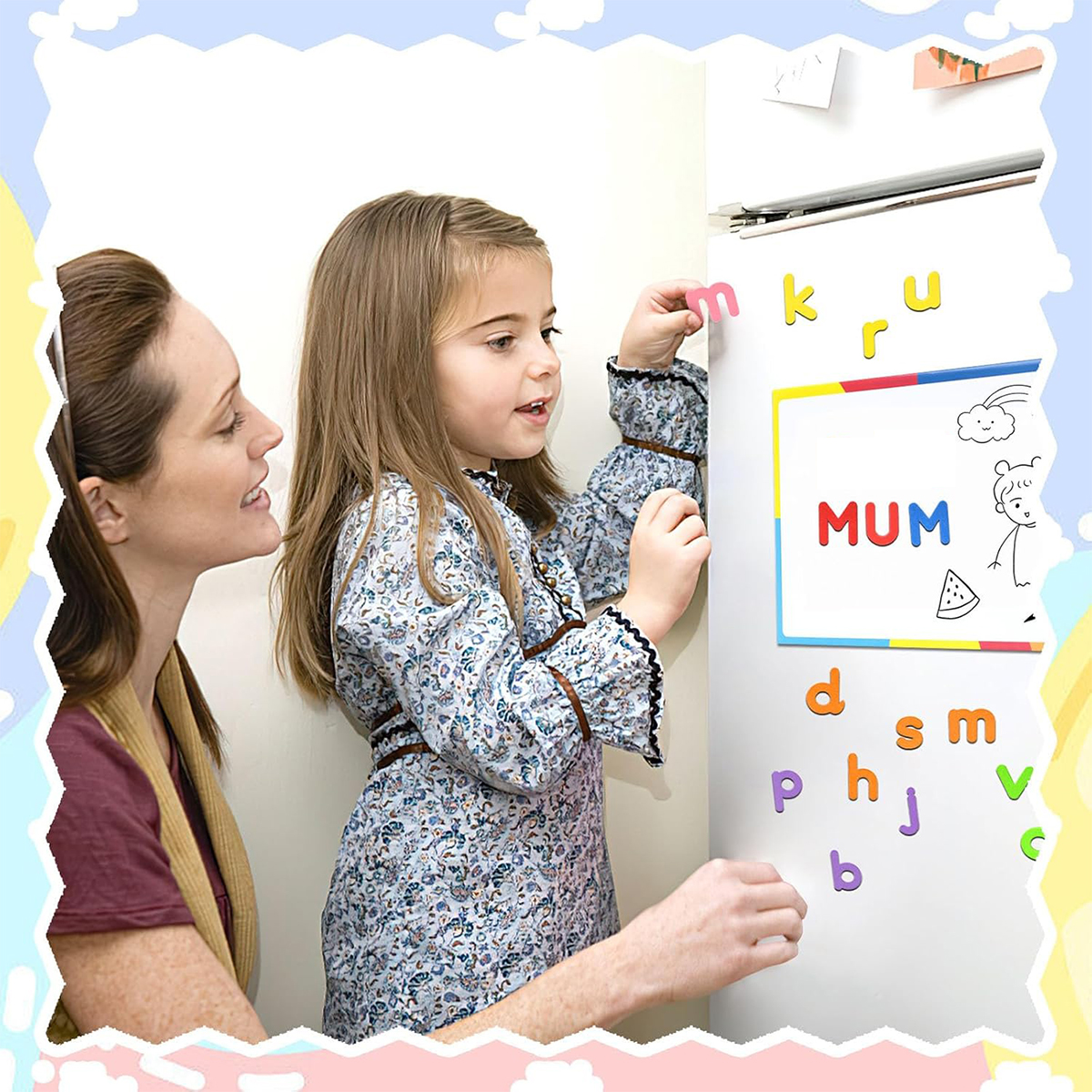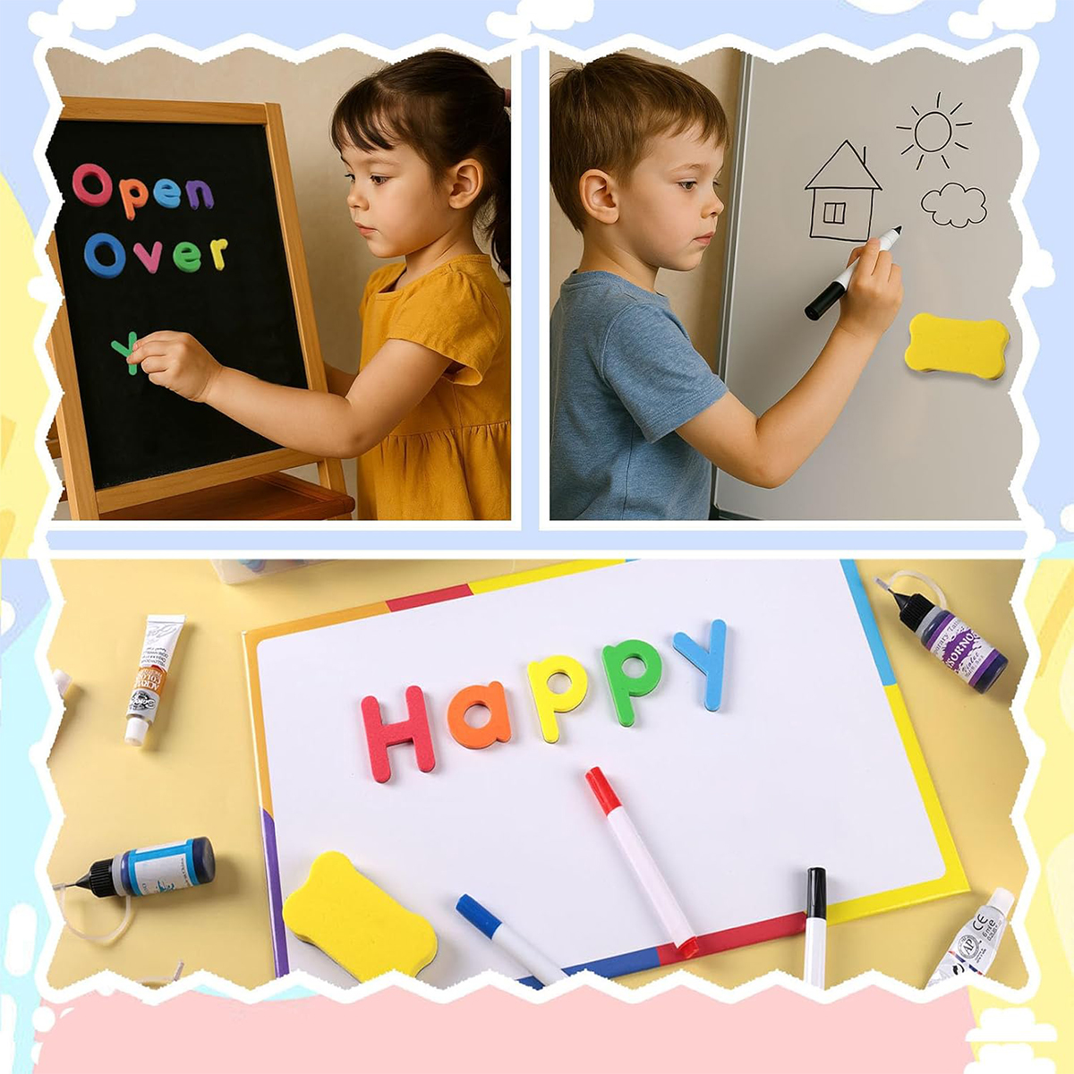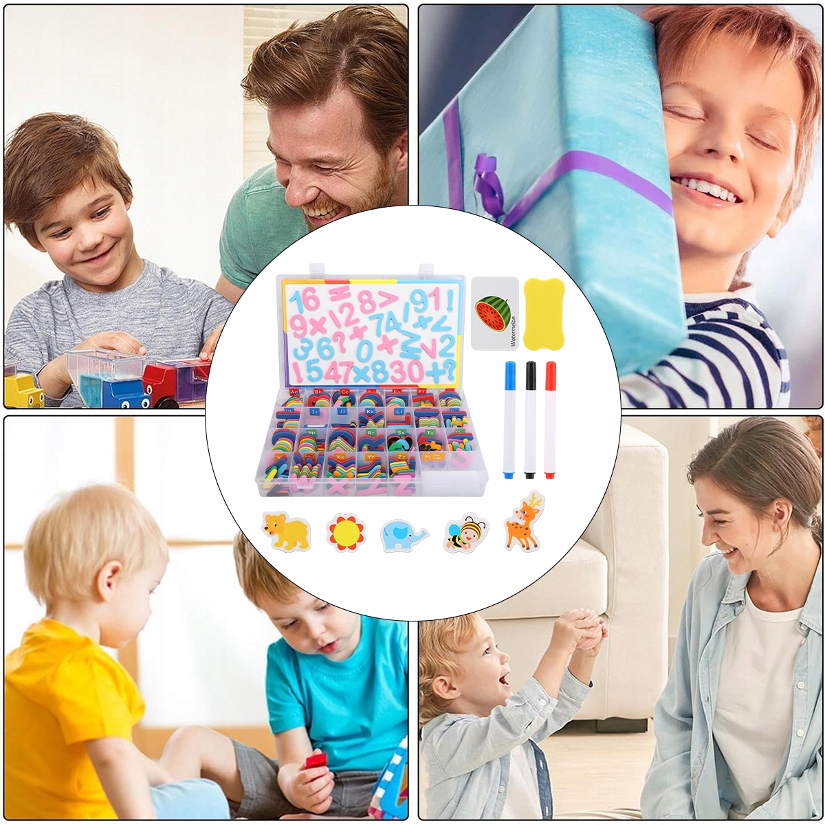 УНІВЕРСАЛЬНЕ ЗАСТОСУВАННЯ: магніти, що входять до комплекту, можна прикріпити до холодильника або будь-якої іншої магнітної поверхні. Завдяки цим простим, веселим і творчим заняттям діти можуть навчитися писати на магнітній дошці, складати речення та виконувати математичні дії.