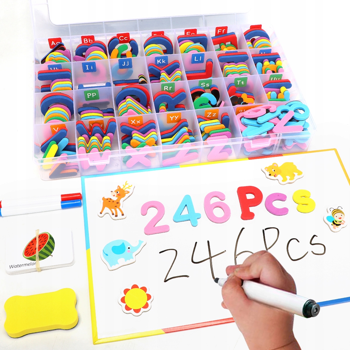 🔥🔥🔥Набір, що містить 246 магнітних букв і цифр, 1 двосторонню магнітну дошку та коробку для зберігання тощо, розвиваючі іграшки для дітей 3, 4, 5, 6 та 7 років🔥🔥🔥