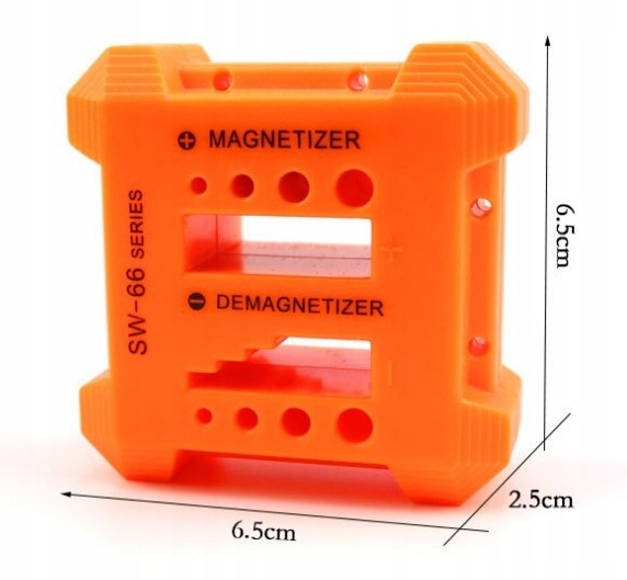 Магнетизатор для викруток - це продукт, який ідеально підійде для вашого дому та гаража. Потужний магніт, вбудований у пластиковий корпус, дозволить вам намагнічувати та розмагнічувати інструменти зі сплавів заліза, такі як викрутки, пінцети чи біти. Осередки намагнічування/розмагнічування різних розмірів підходять для будь-якої круглої та плоскої викрутки.
