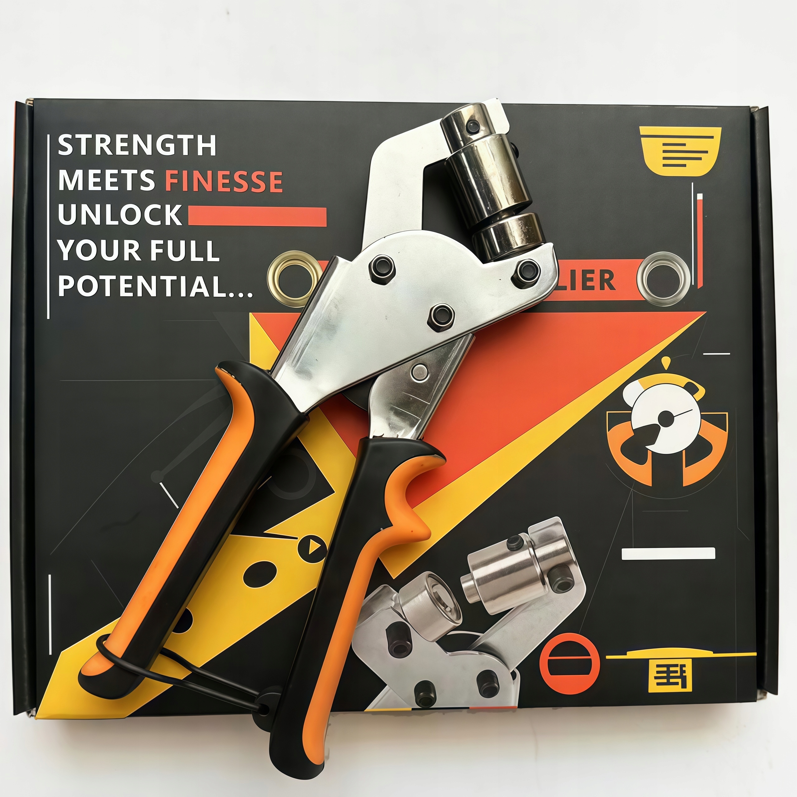 - Кілька комбінацій: набір люверсів включає фрезу для отворів, відповідну шпильку та 600 наборів отворів для люверсів (кожен набір включає 1 вушко та 1 шайбу) і місце для зберігання
