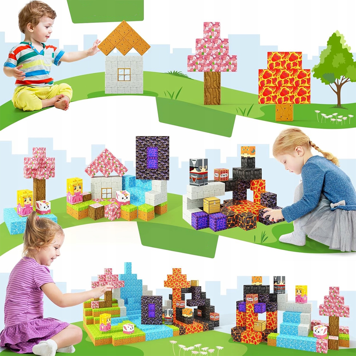 【Ідеальна навчальна іграшка як подарунок】 Ідеальний подарунок для дітей різного віку, від малюків до шкільних дітей, особливо для молодих гравців, які люблять відкривати та будувати у віртуальних світах. Він пропонує нескінченні можливості для творчості та уяви, що дозволяє їм будувати та розробляти унікальні пейзажі. Підходить для групових занять та використання в класі, включаючи дитячий садок та нуль. Ідеальна іграшка для гри на свіжому повітрі для хлопчиків та дівчат у віці 3+. Ідеально підходить для дня народження, Дня дітей, Різдва тощо