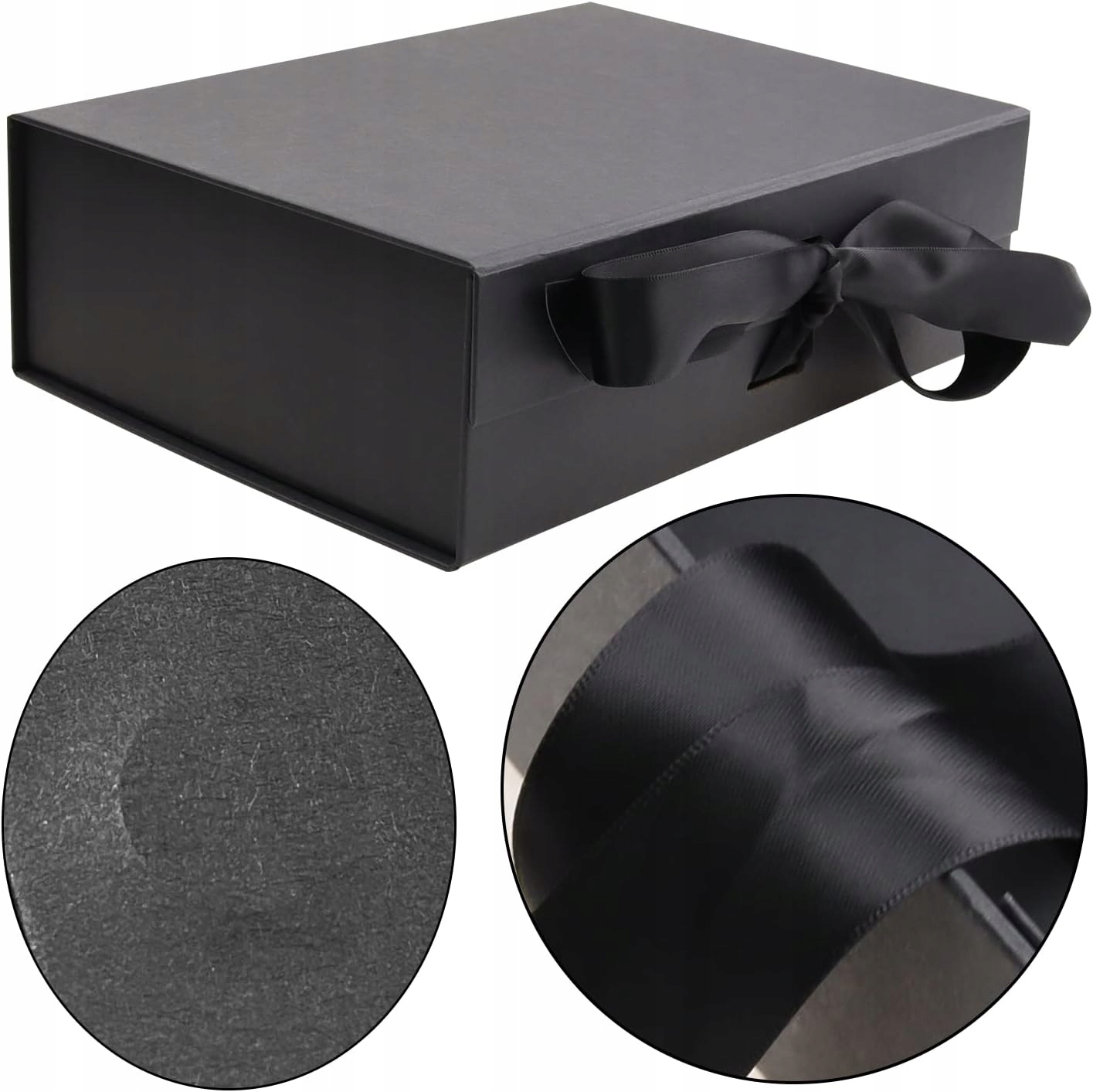 Магнітна чорна подарункова коробка з кришкою та бантом