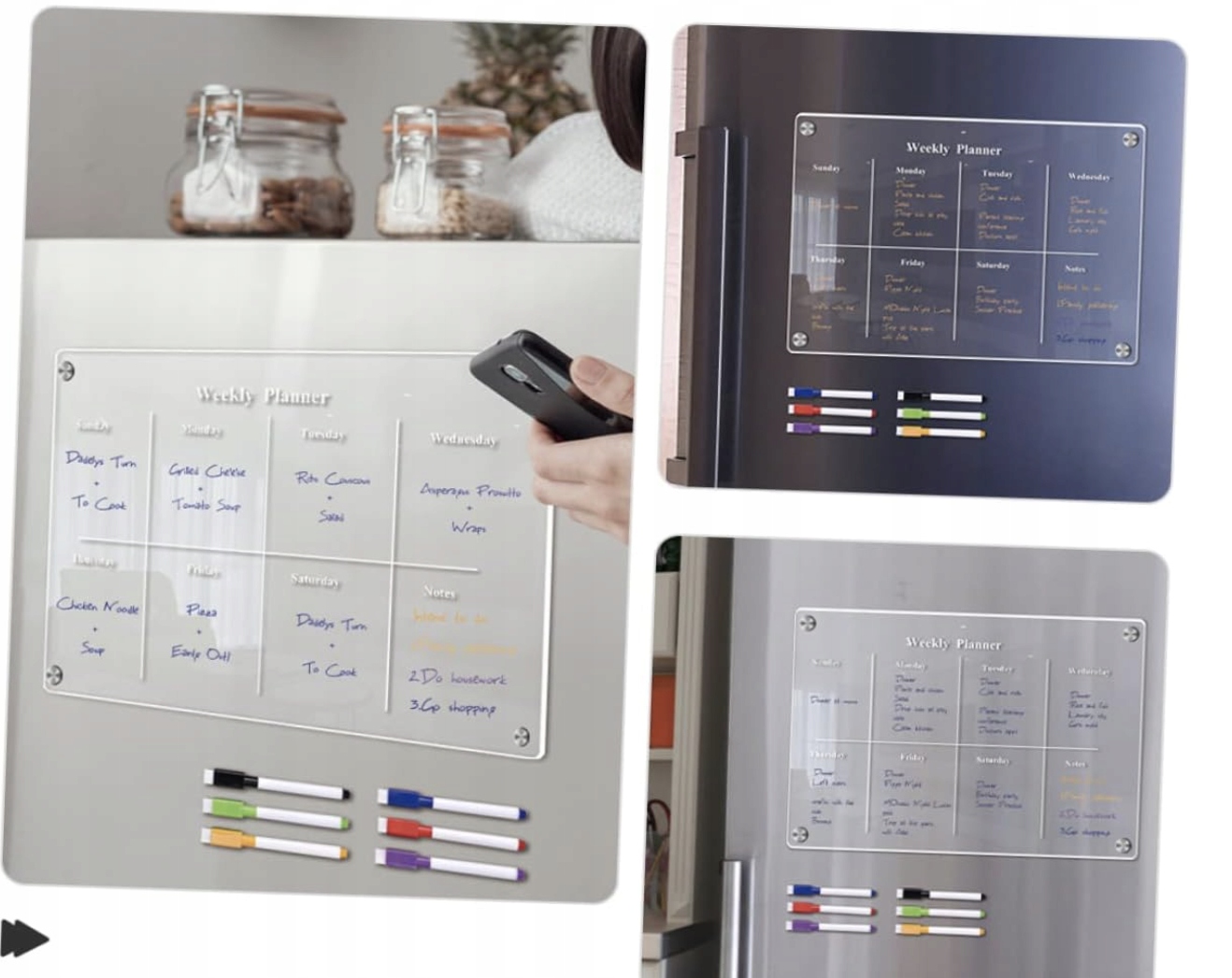 МАГНІТНА ДОШКА ДЛЯ ХОЛОДИЛЬНИКА ТИЖНЕВИЙ ПЛАНЕР СУХОСТИРАЮЧІ АКРИЛОВІ ФЛАСНКИ