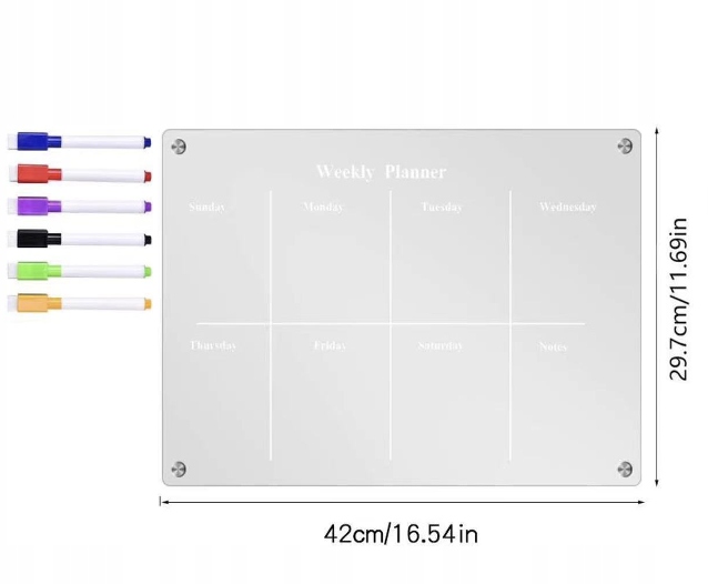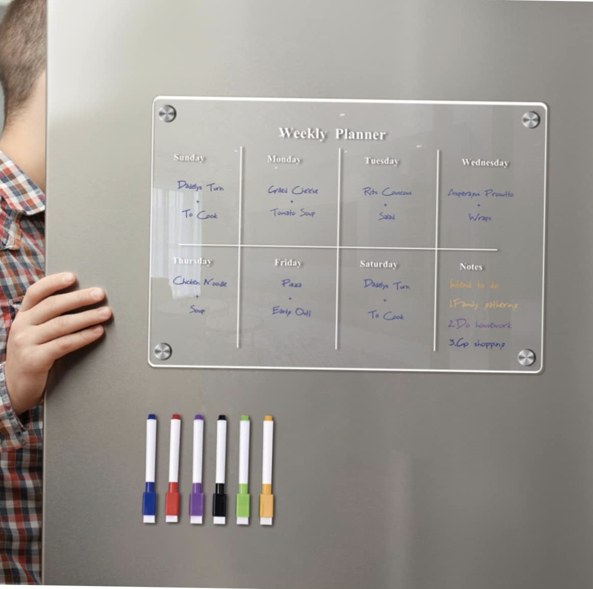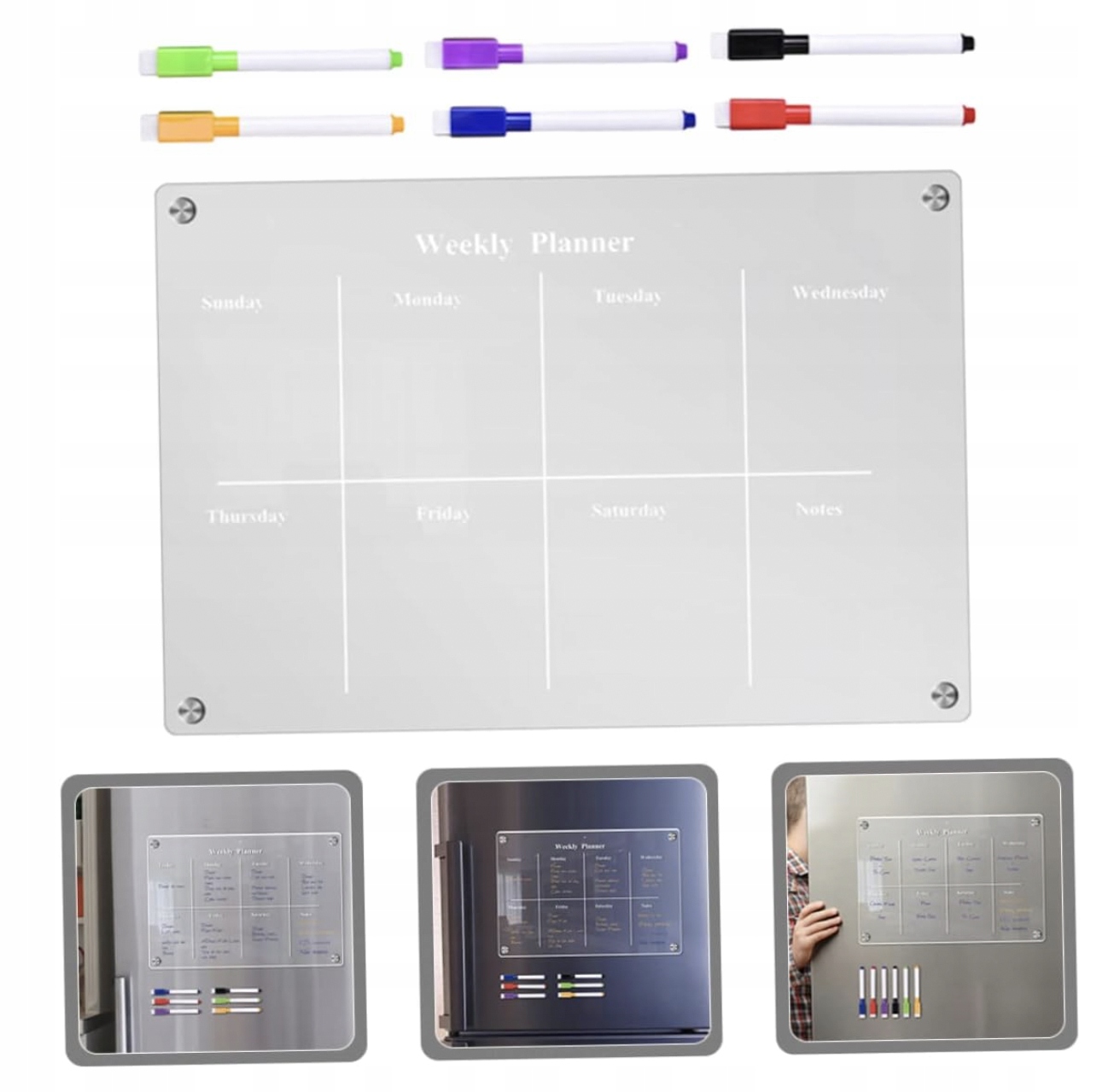Ця акрилова дошка є не лише тижневим планувальником, а й поверхнею для запису важливої інформації, яка легко стирається, що робить її універсальним інструментом для організації щоденних справ життя .