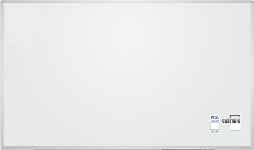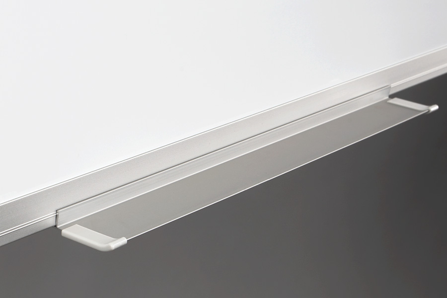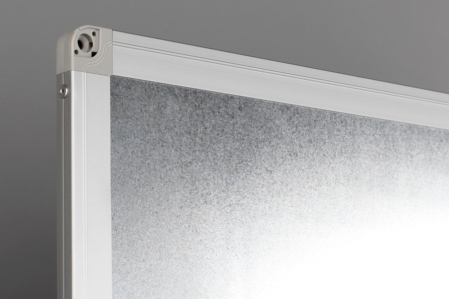 Професійна біла сухостираюча дошка з магнітними властивостями, розмір 170х100 см, анодована алюмінієва рама, оздоблена пластиковими куточками, що імітують алюміній, тильна сторона дошки укріплена оцинкованим листом, збірка через куточки, Дизайн дошка була розроблена, щоб відповідати сучасним, а також традиційним кімнатам. Дошку можна повісити як горизонтально, так і вертикально.