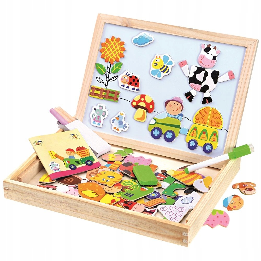 Набір складається з двосторонньої дошки, кожна сторона якої пропонує унікальний навчальний і творчий досвід. Магнітна дошка - це чудове місце, щоб розставляти та переміщати різнокольорові магніти. Дитина може створювати незліченну кількість образів, розставляти персонажів, сцени з природи або навіть створювати власні маленькі історії. Ця інтерактивна форма гри сприяє розвитку навичок сприйняття, логічного мислення та вміння планувати.
