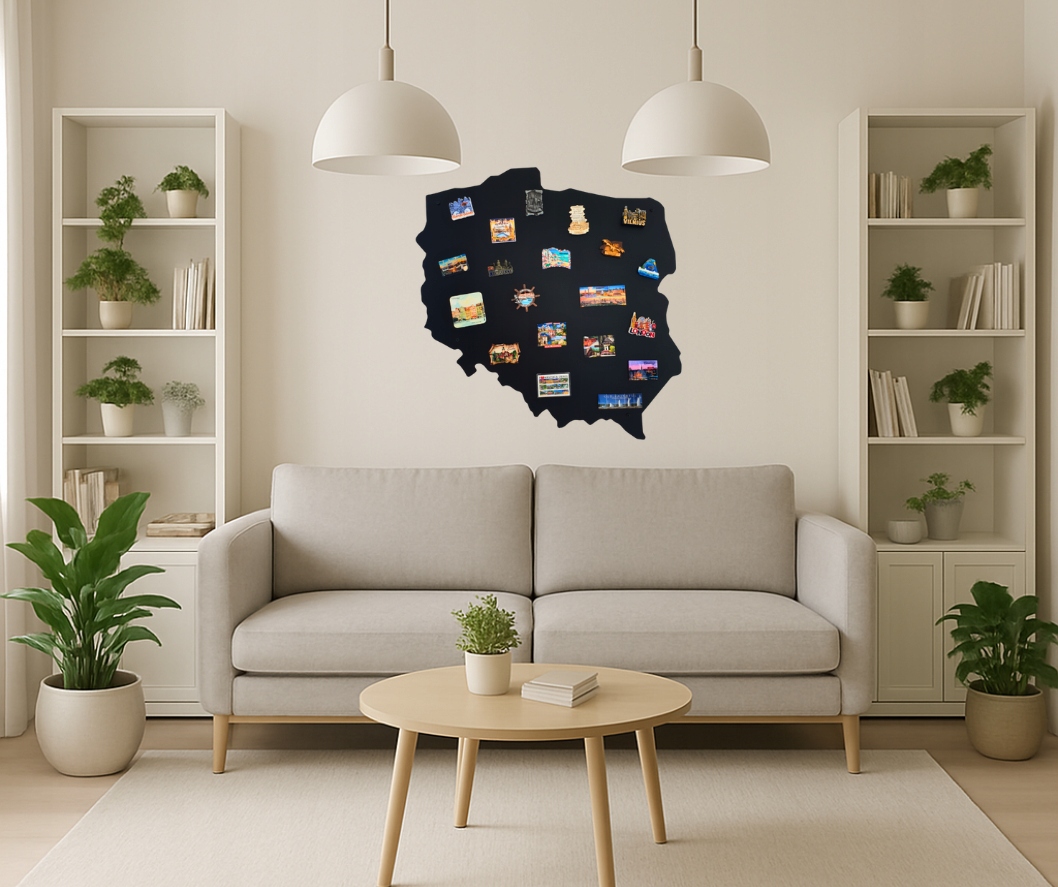 Дошка у формі Польщі - це не тільки функціональне місце для кріплення записів, а й ефектна прикраса інтер'єру. У вітальні може виступати в якості оригінальної карти для позначення відвіданих міст туристичними магнітами. В кімнаті учня вона стане помічником для вивчення географії, а в холі - практичним місцем для нагадувань, списків покупок або повідомлень для домочадців.