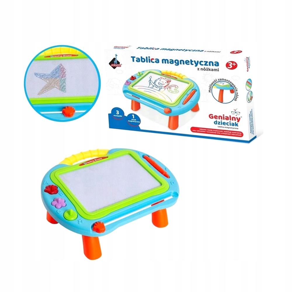 Гра з малюванням на магнітній дошці розвиває дрібну моторику ручок і стимулює уяву малюка. Додатково в набір входять 3 штампи різної форми - коло, зірка і ручка. Ручка для малювання легка і підходить для маленьких рук. До дошки можна кріпити ніжки - спереду коротше, ззаду довше Вік: 3+