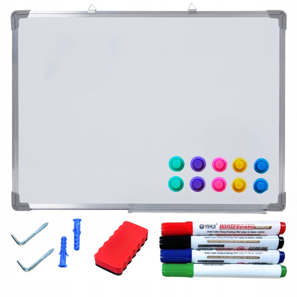 Сухостираюча магнітна дошка 120х80 см - ідеальний інструмент для тих, хто цінує порядок і функціональність. В офісі він допоможе організувати зустрічі та повсякденні завдання, у школі чи дитячому садку він стане чудовою підтримкою для навчання, а вдома він слугуватиме планувальником для всієї родини. Ви також можете використовувати під час зустрічі з друзями - він ідеально підійде для таких ігор, як каламбури, або як інструмент для творчої гри для дітей.