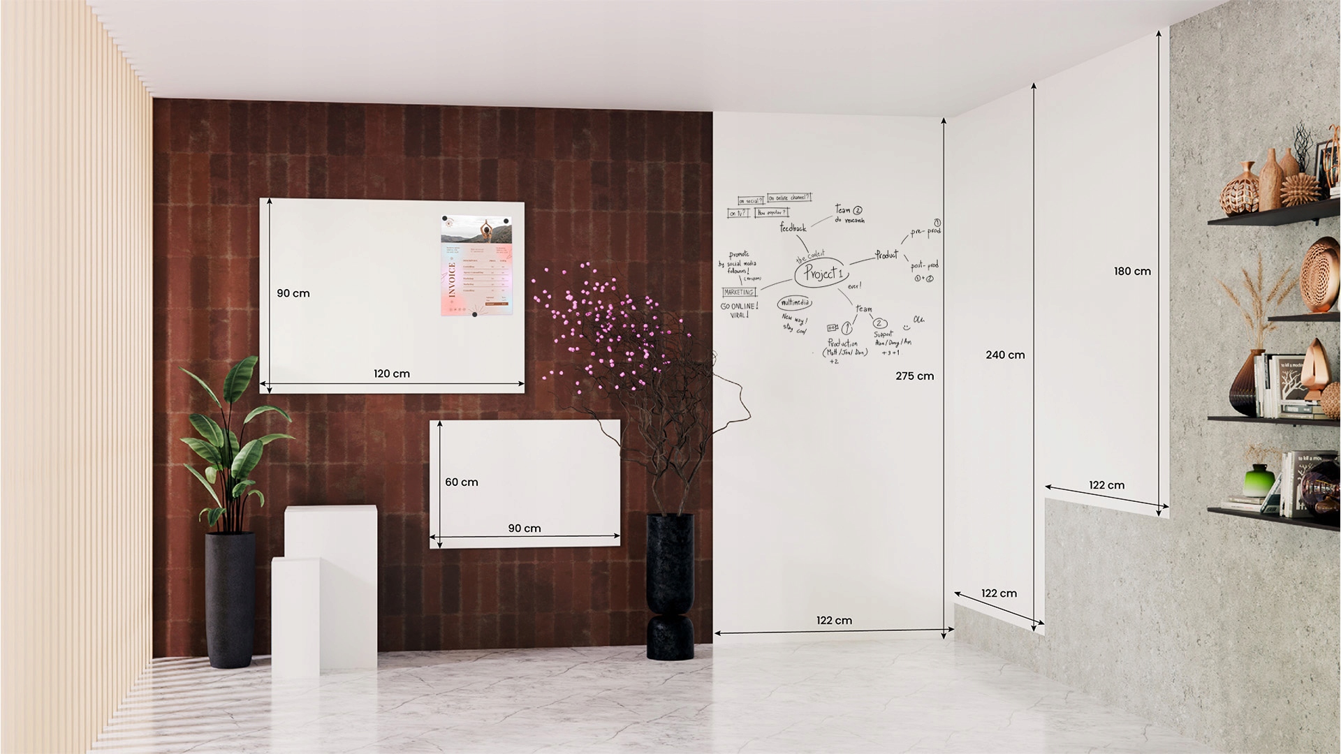 - подвійна, абразивна поверхня -Магнітна лінія подвійна, а її герметичні, білі та блискучі поверхні ви можете використовувати, щоб представити вибраний вміст та створити нотатки для привабливості очей. Це чудовий спосіб покращити спілкування в командах або між компанією та клієнтами!