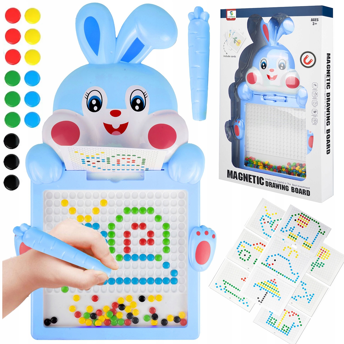 Дошка оснащена 100 різнокольоровими намистинками з магнітом червоного, жовтого, зеленого, синього та чорного кольорів. Принцип роботи простий - притягніть намистину ручкою і розташуйте її у вибраному місці, створюючи різнокольорові фігурки, пейзажі та тварин.