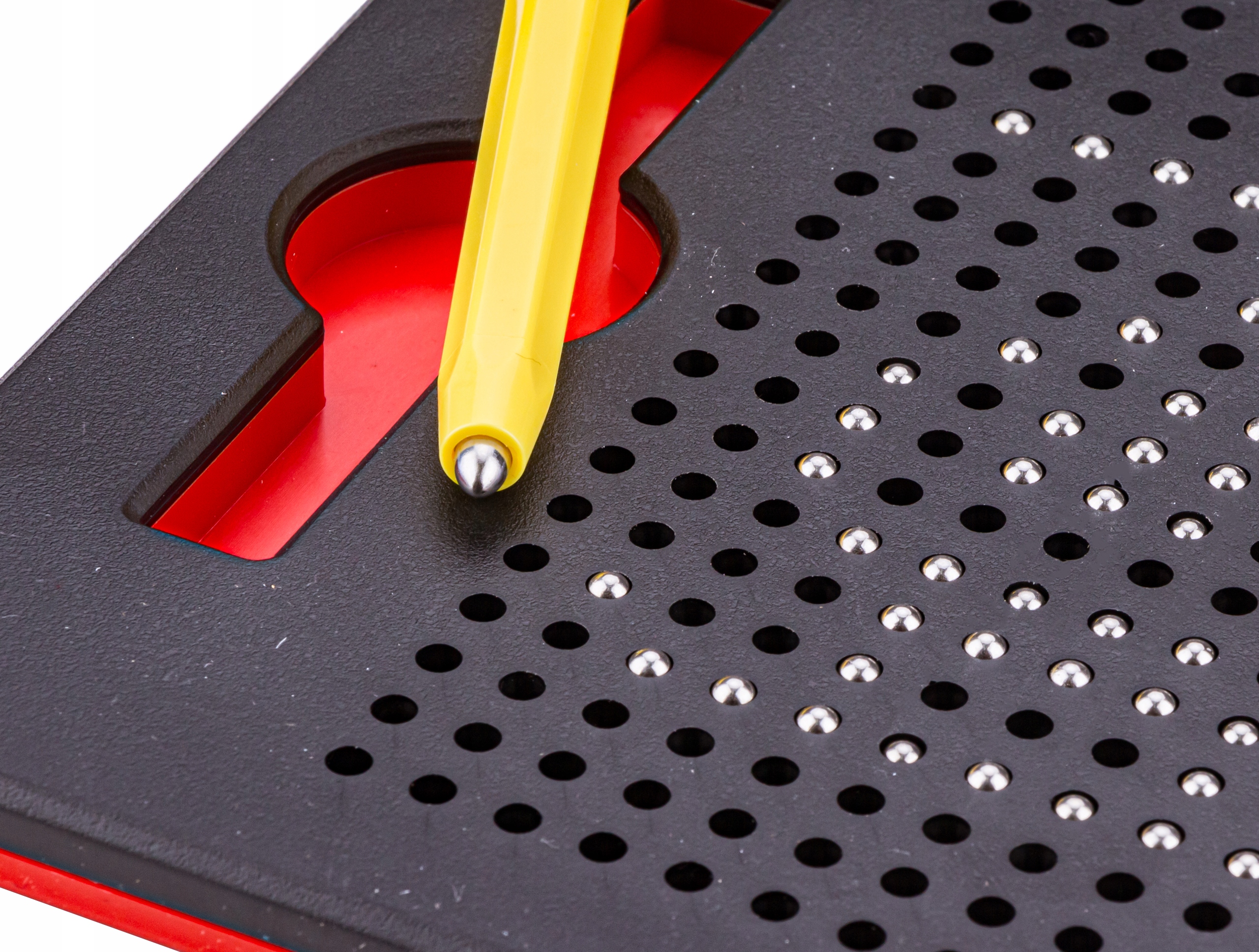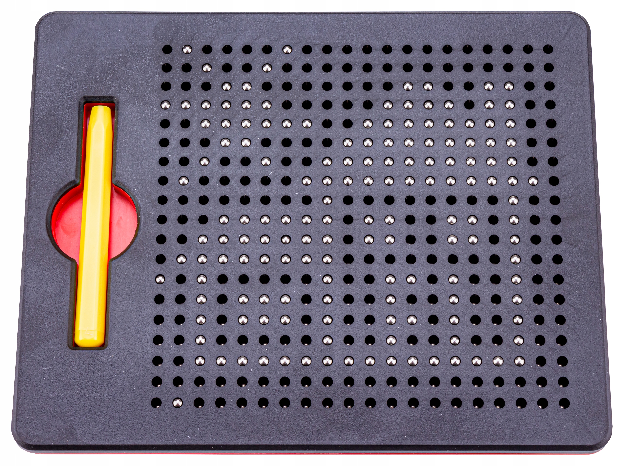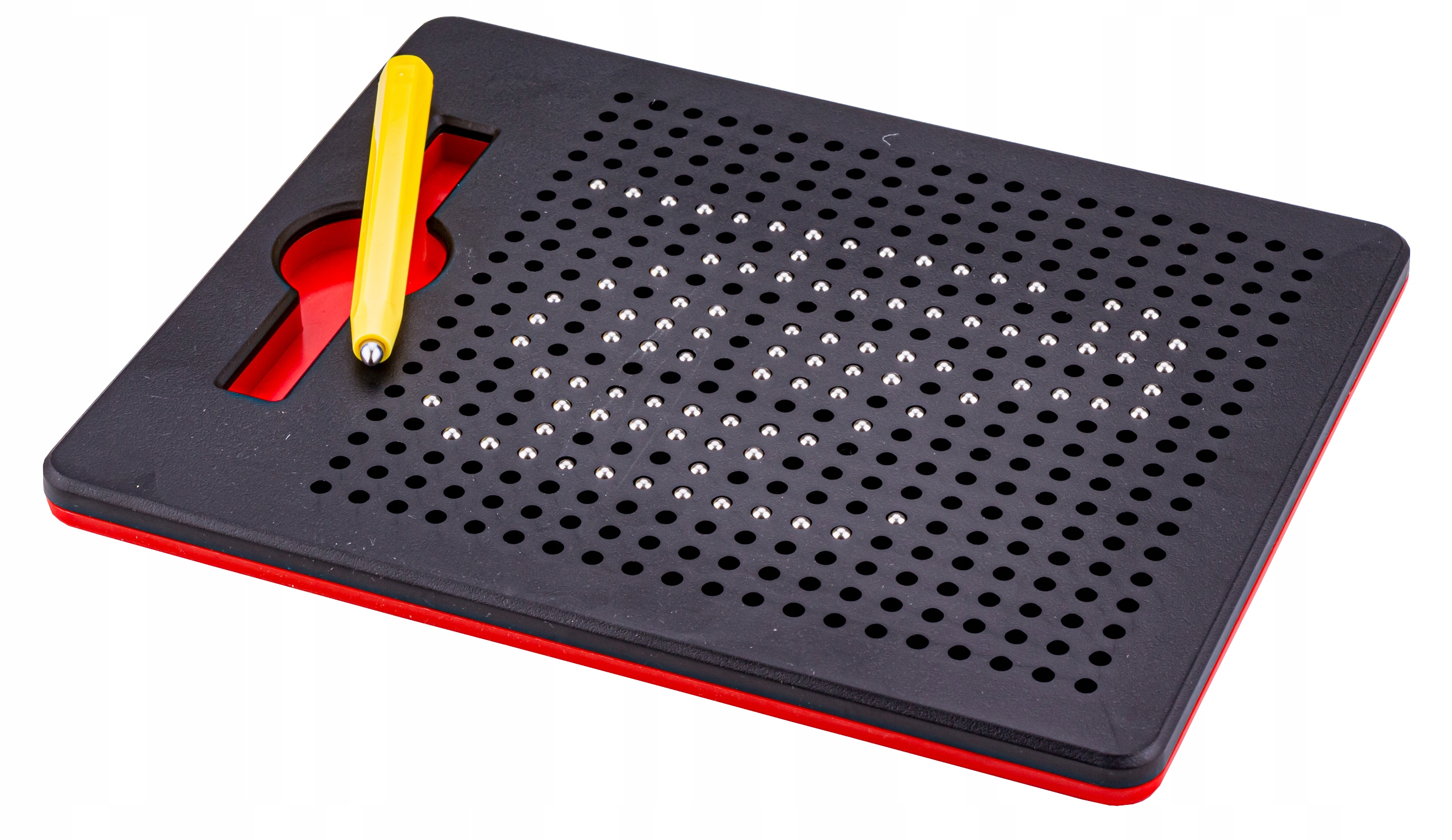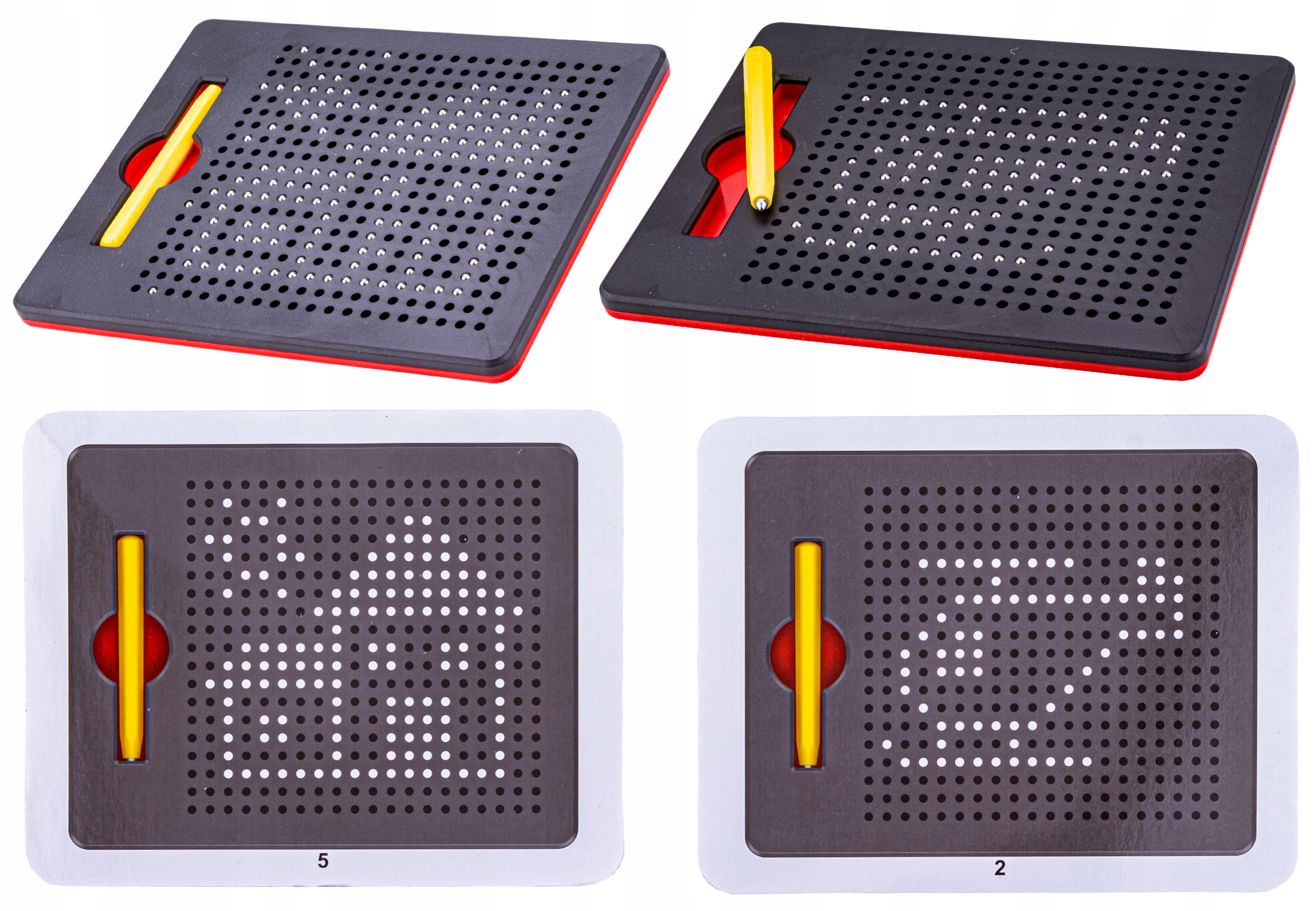 Усередині планшета містяться металеві кульки , а процес малювання передбачає притягування обраних кульок за допомогою магніту, розміщеного на кінці пера. Кожну композицію можна легко стерти - просто втисніть кульки всередину іншим кінчиком ручки або ручкою.