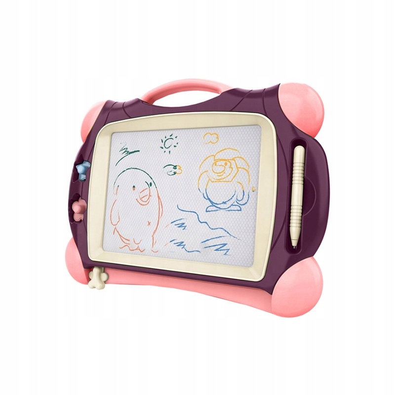 Магнітна дошка дає можливість довго творчо розважатися! Дошка спонукає писати та малювати. Малювання допоможе дитині заспокоїтися і заспокоїтися. Scribble дозволяє створювати нескінченну кількість малюнків - просто перемістіть спеціальний повзунок, і малюнок зникне, і ви зможете малювати знову! У набір також входить зручна чарівна ручка та 2 штампи, які урізноманітнюють вашу роботу. Дошка має зручну ручку, тому дитина може брати її куди завгодно. Опис розвиватиме у дитини ручні здібності, уяву, креативність і дасть можливість розвинути художню сторону дитини!